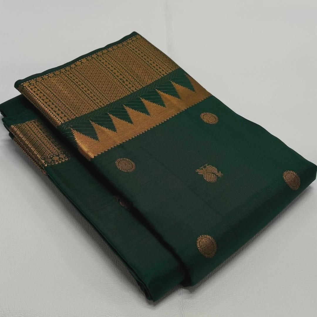 Dalliance Dark Green Soft Silk Saree With Twirling Blouse Piece