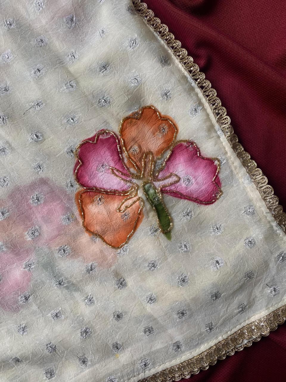 Dalliance Off White Handwork Crush Silk Saree With Unique Blouse Piece