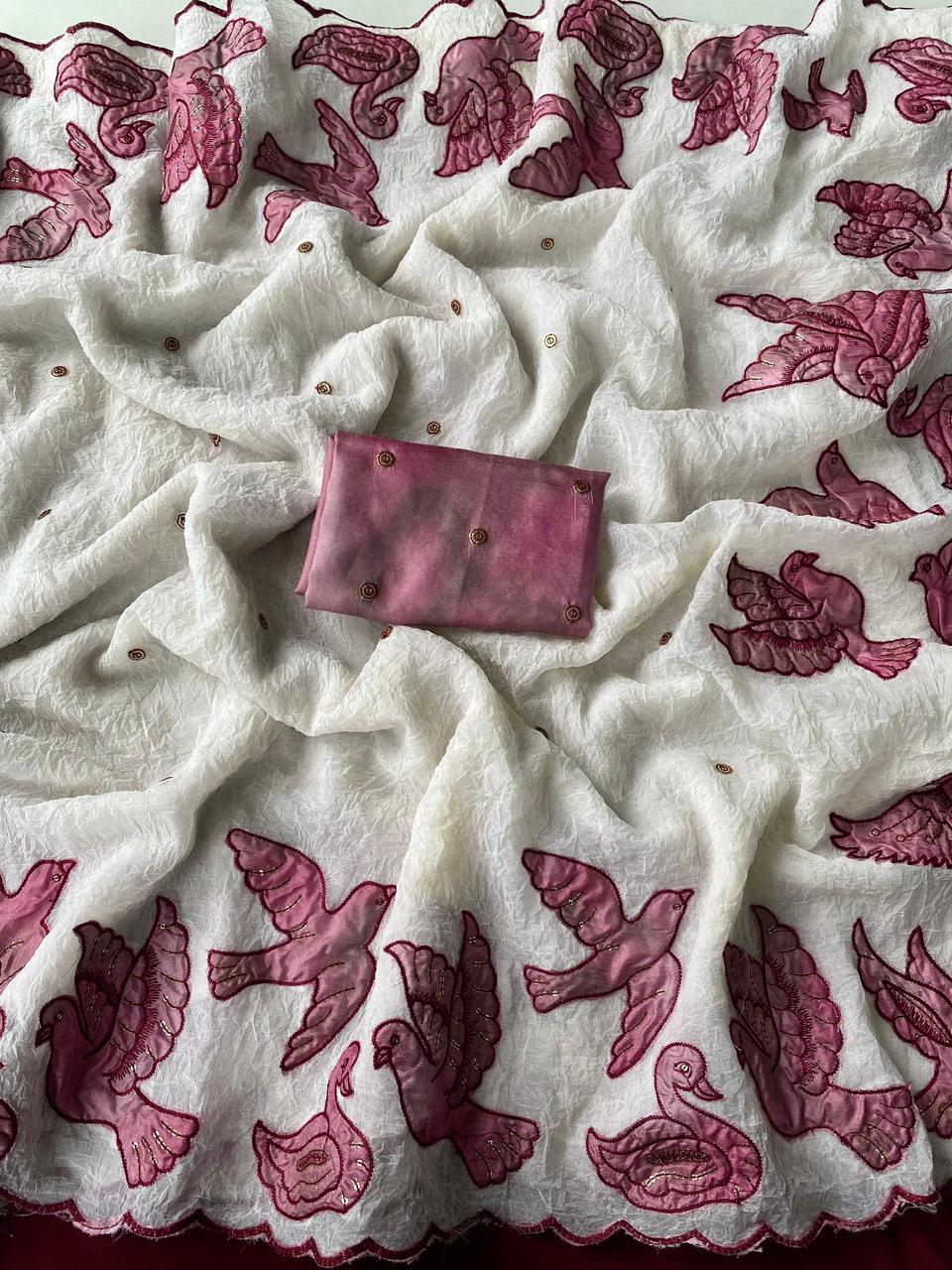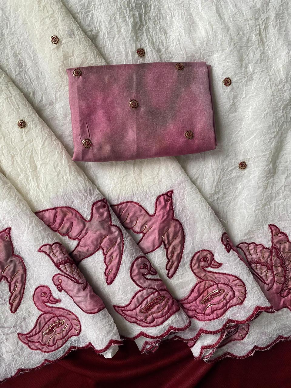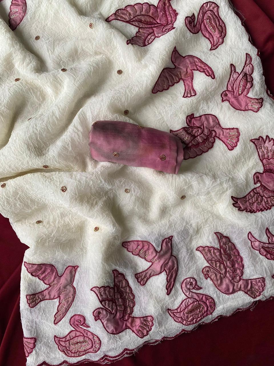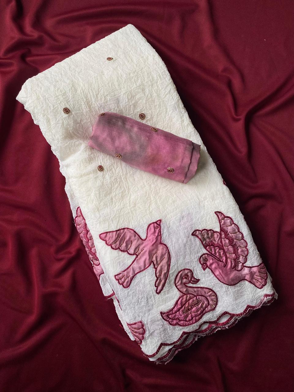 Elevate your ethnic wardrobe with our exquisite Crush Silk Saree. Crafted with delicate embroidery work, this classic piece exudes luxury and grace. Perfect for special occasions or evening events, this saree promises to make you feel like royalty.