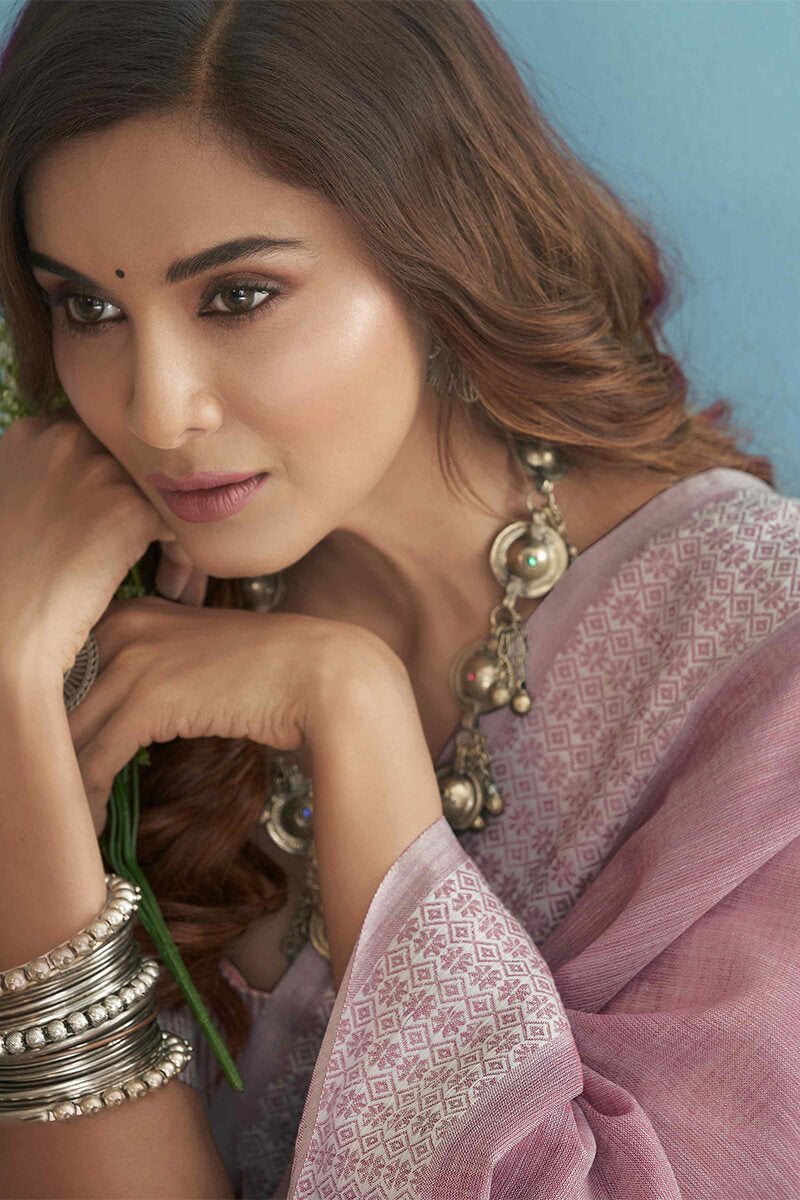 Decrease quantity for Deserving Lavender Lucknowi Silk Saree With Blooming Blouse Piece