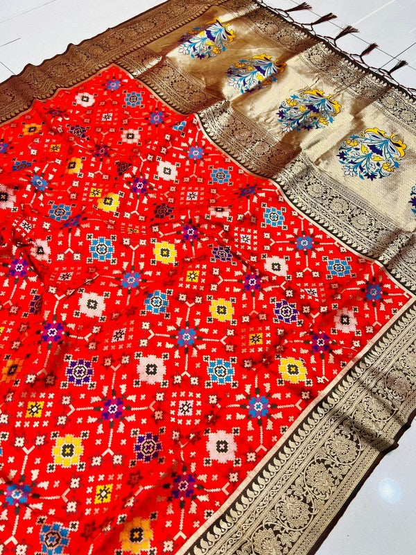 Designer Red Soft Patola Silk Saree with Demanding Blouse Piece