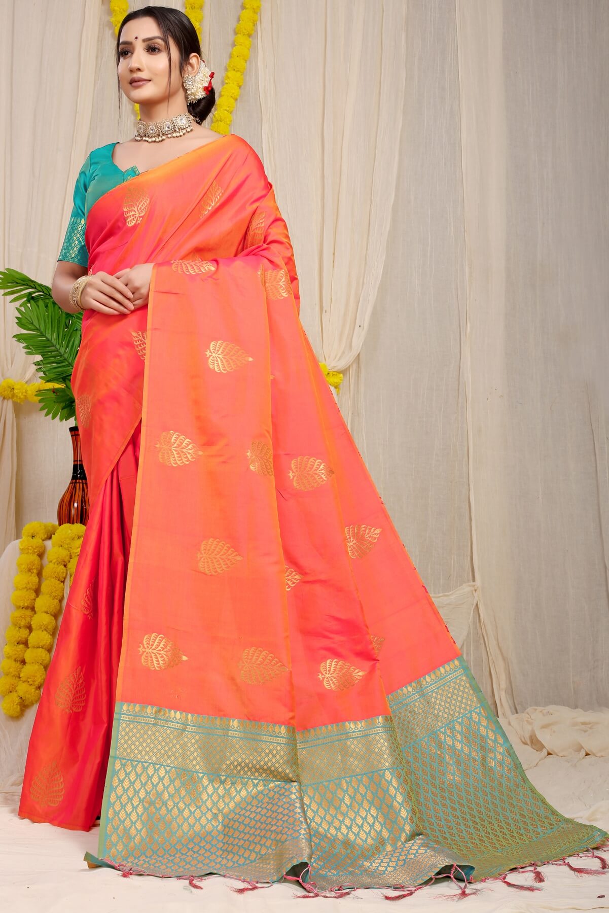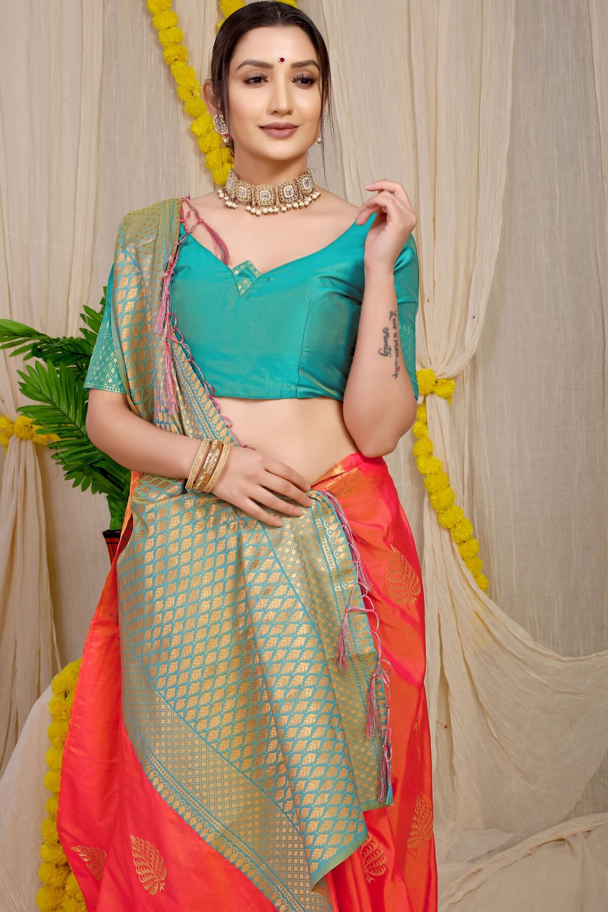 Desiring Peach Soft Banarasi Silk Saree With Lissome Blouse Piece