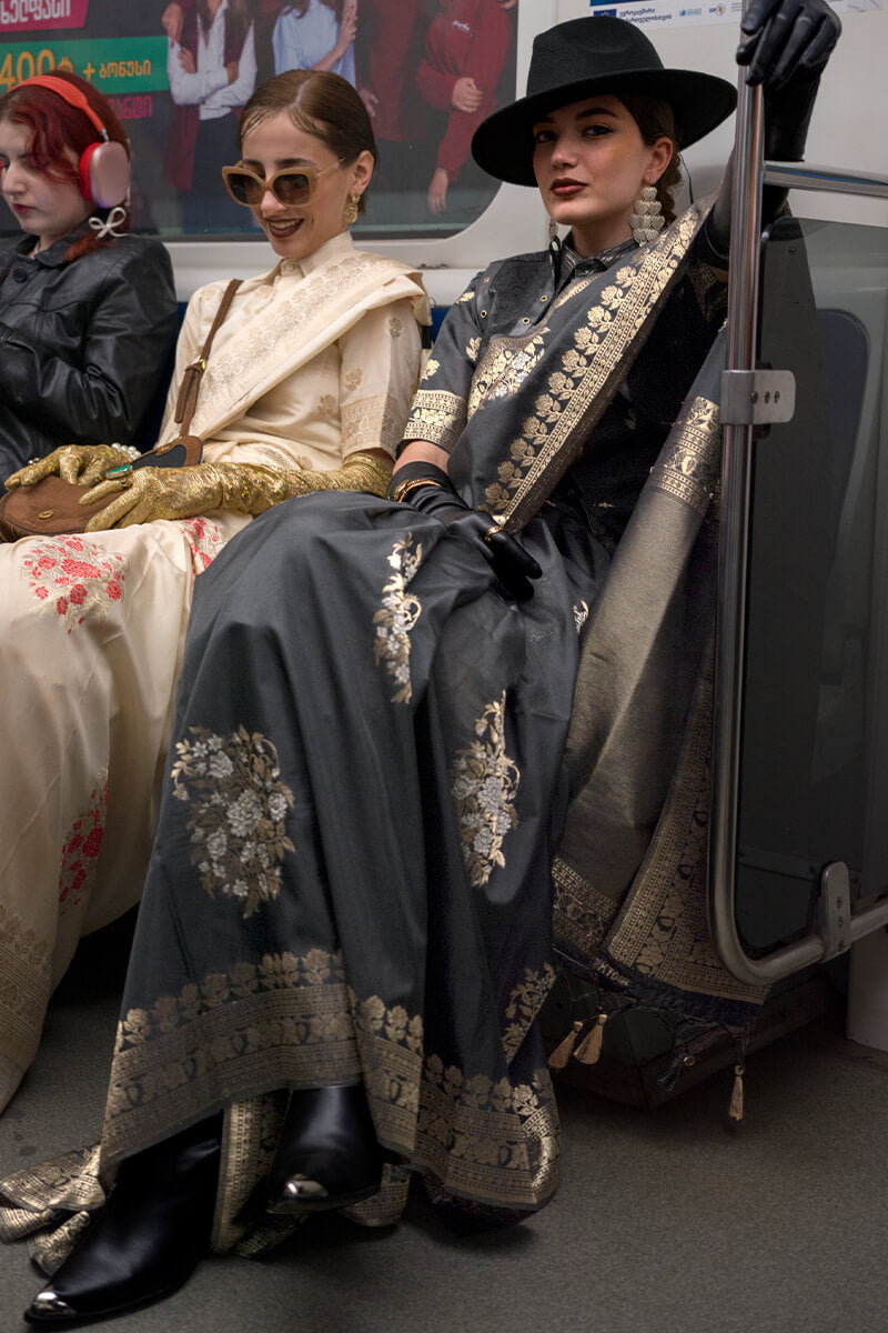 Devastating Black Soft Banarasi Silk Saree With Amiable Blouse Piece