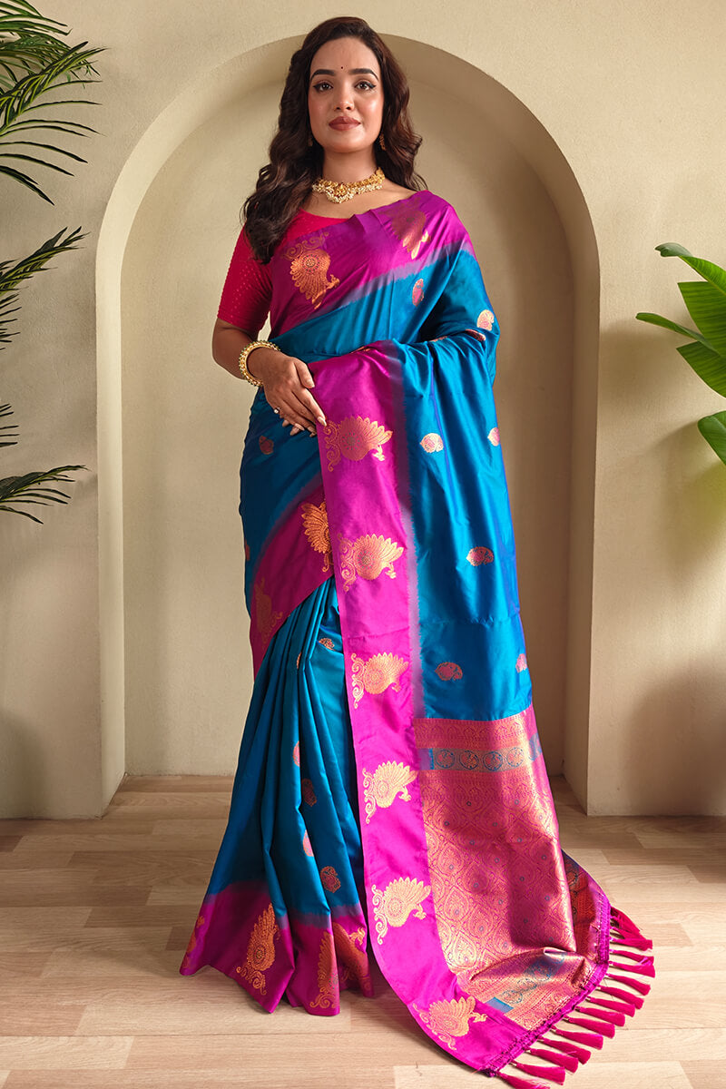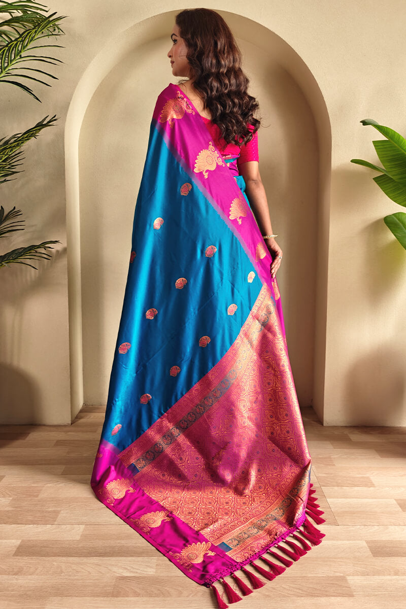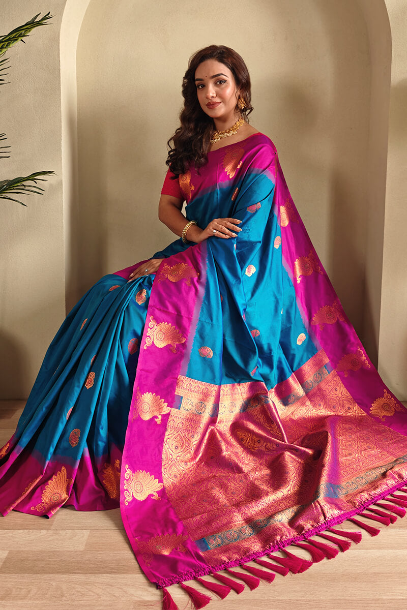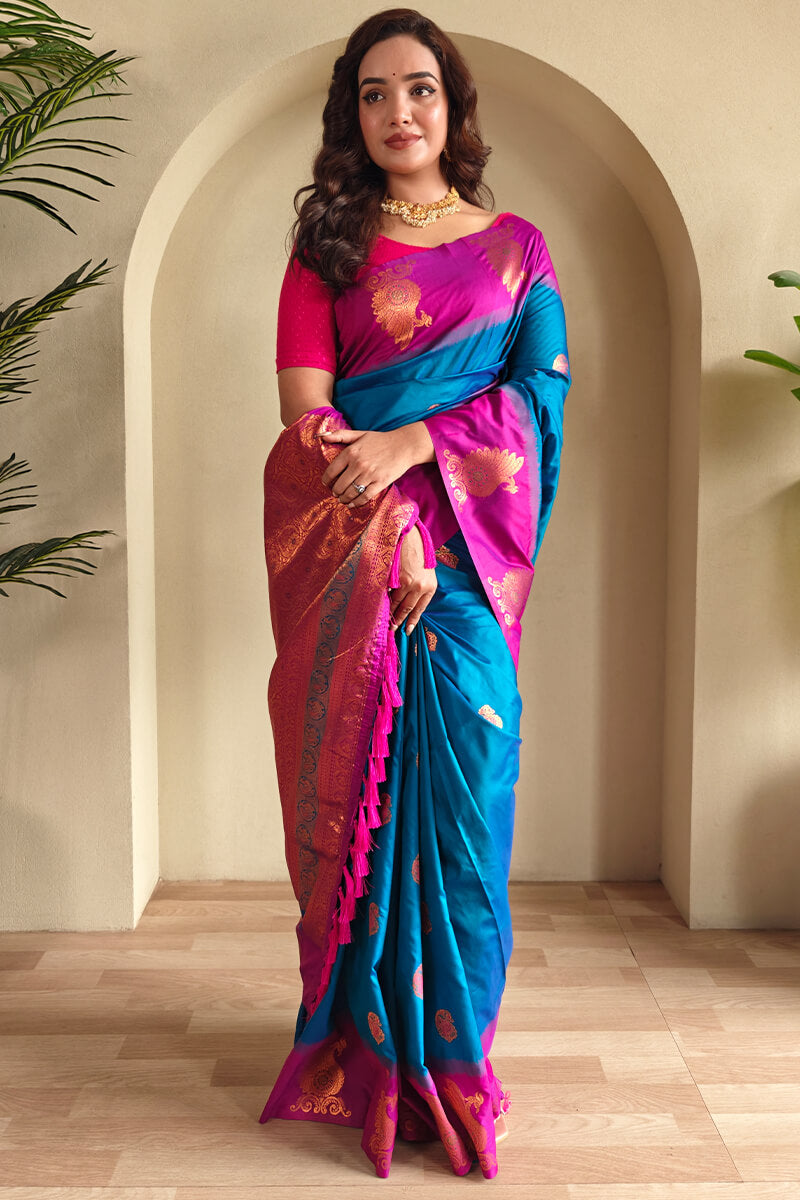 Elaborate Blue Soft Banarasi Silk Saree With Winsome Blouse Piece