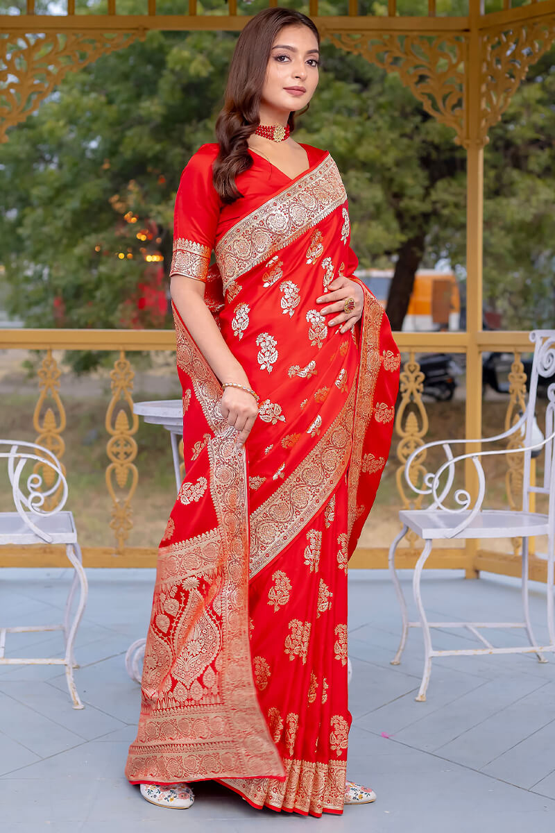 Wrap yourself in elegance with our Soft Banarasi Silk Saree. Crafted with care and attention to detail, this saree exudes sophistication and grace. The lightweight fabric ensures a comfortable wear all day long, while the stunning designs will make heads turn wherever you go.