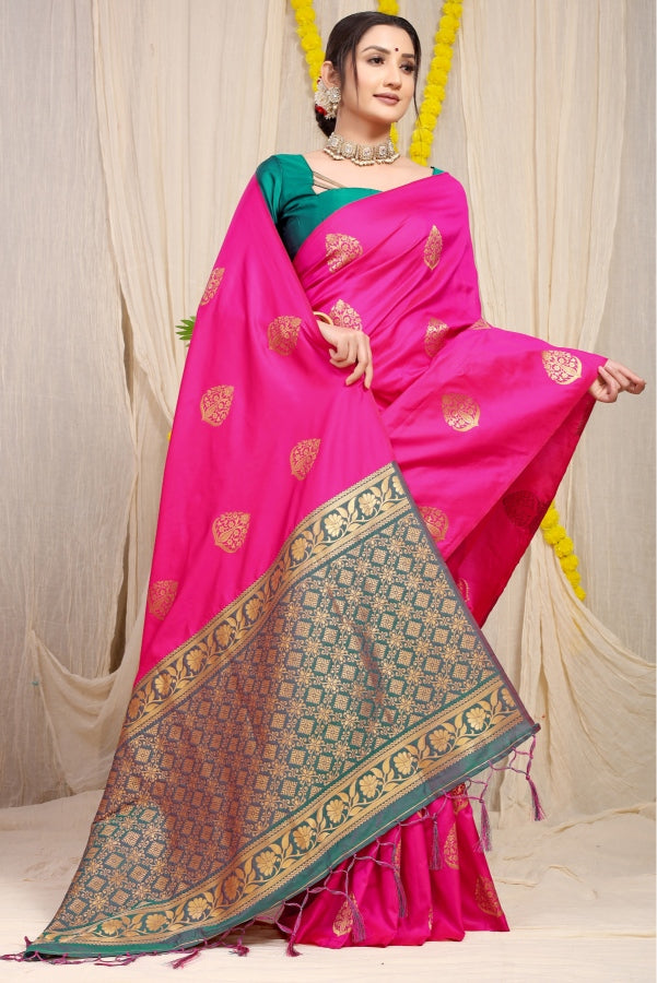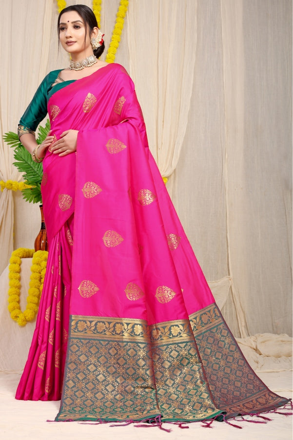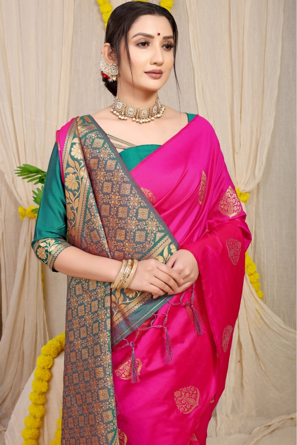 SAREE SPECIFICATIONS: Fabric: Banarasi Silk Colour: Dark Pink Work Type: Silver & Gold Zari Weaving