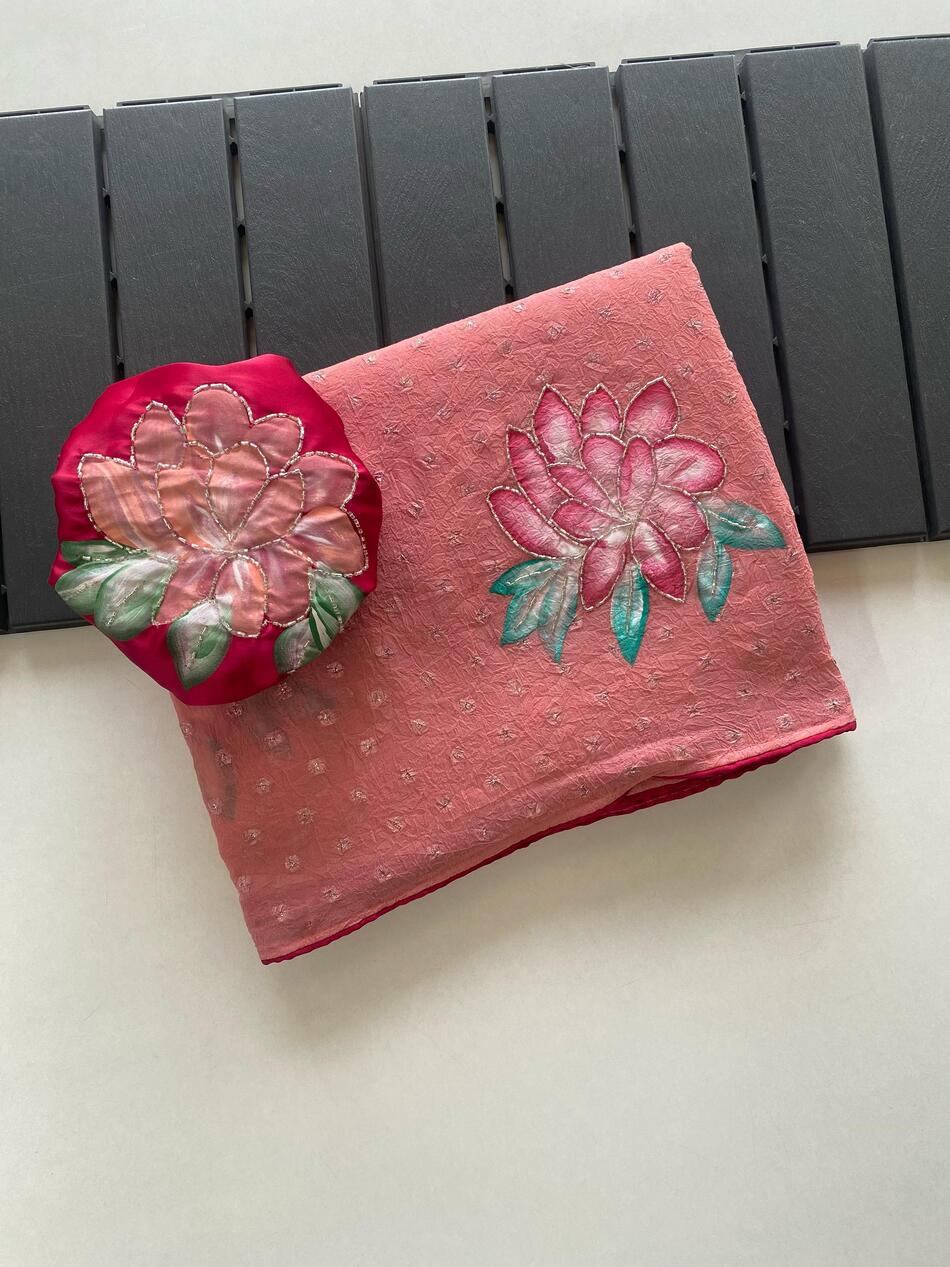 Ethnic Pink Handwork Crush Chiffon Silk Saree With Hypnotic Blouse Piece