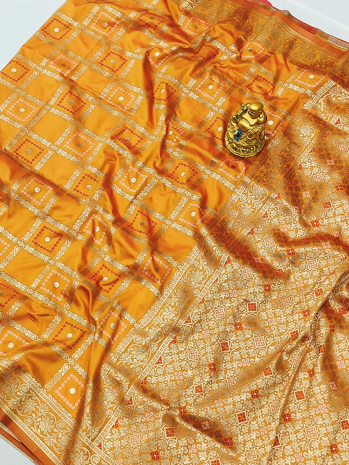 Fairytale Orange Banarasi Silk Saree With Classic Blouse Piece