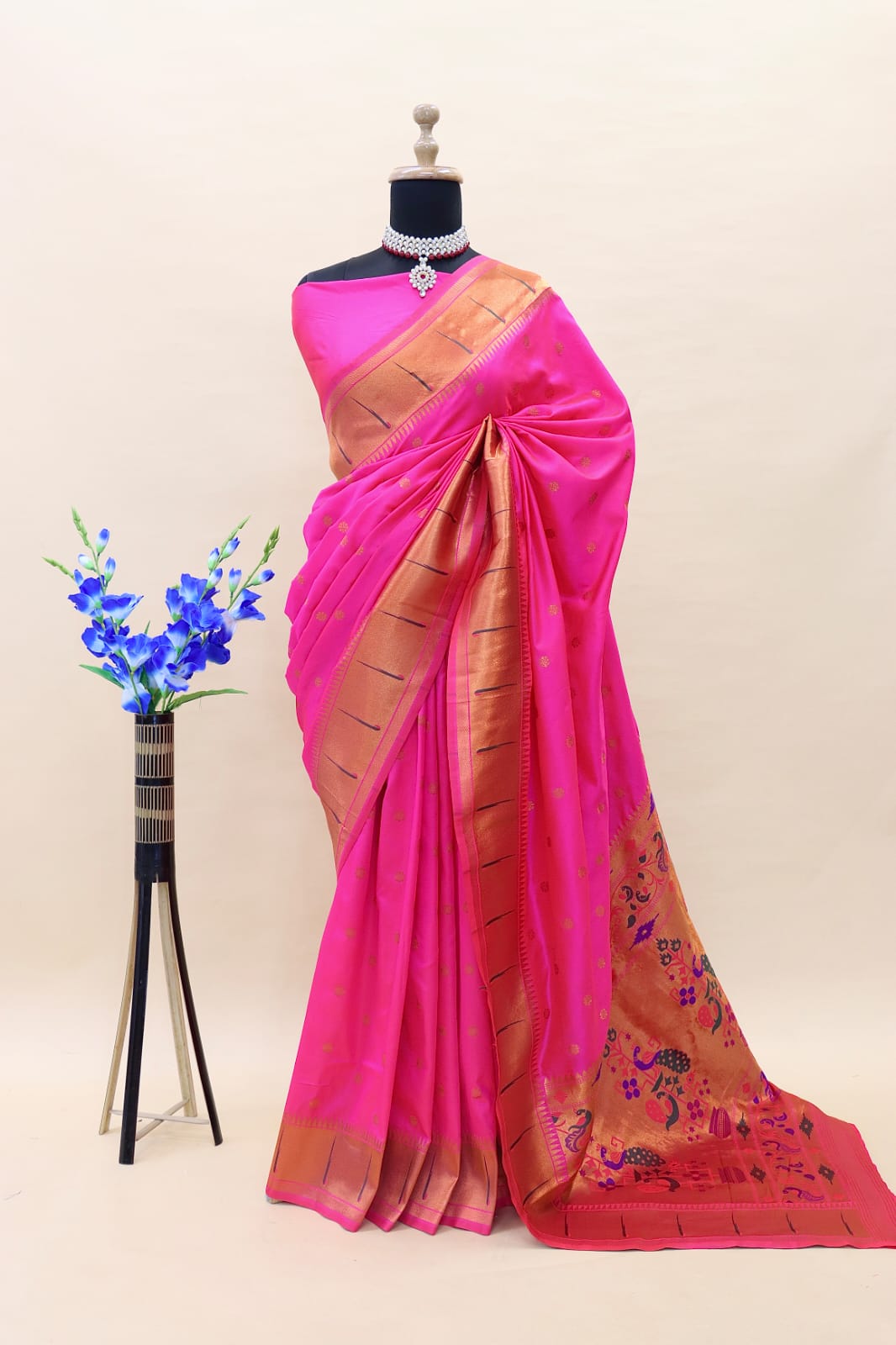 Fancifull Dark Pink Paithani Silk Saree With Opulent Blouse Piece