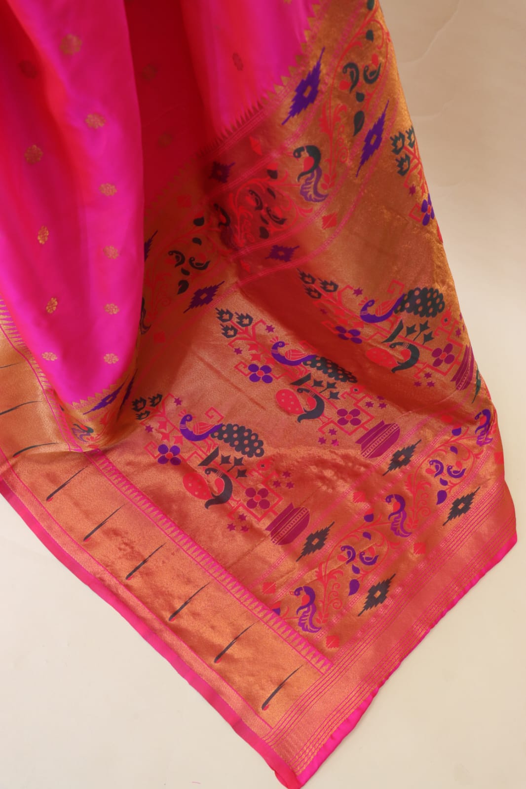 Increase quantity for Fancifull Dark Pink Paithani Silk Saree With Opulent Blouse Piece