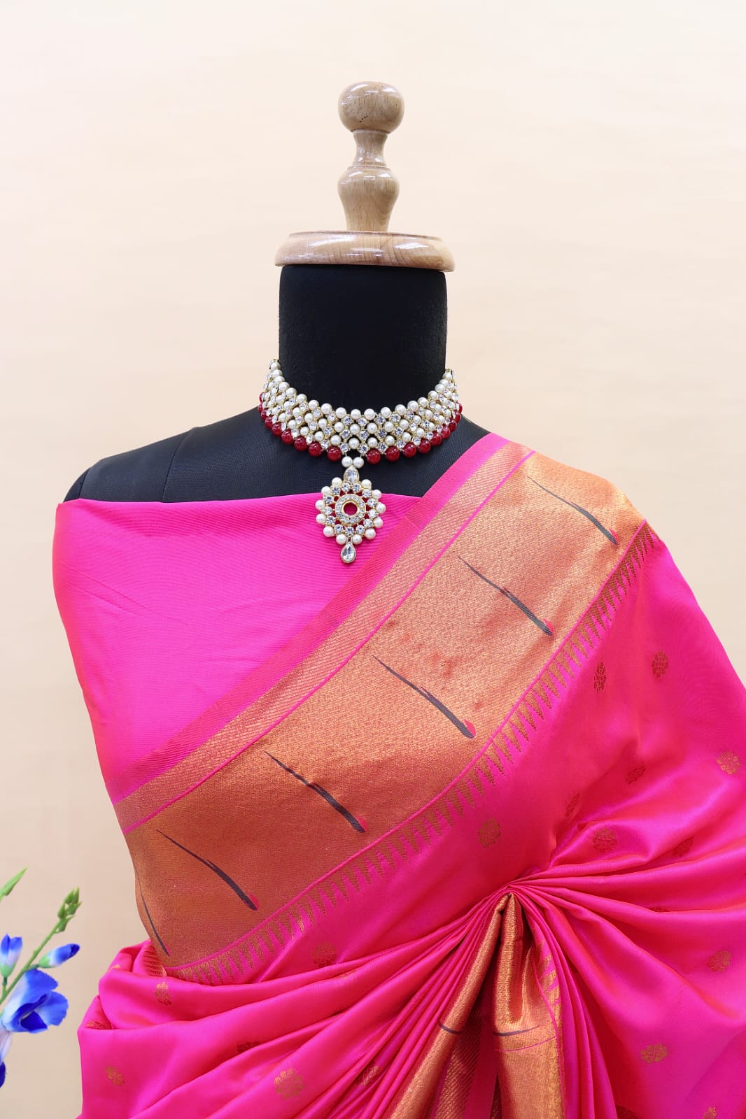 Decrease quantity for Fancifull Dark Pink Paithani Silk Saree With Opulent Blouse Piece
