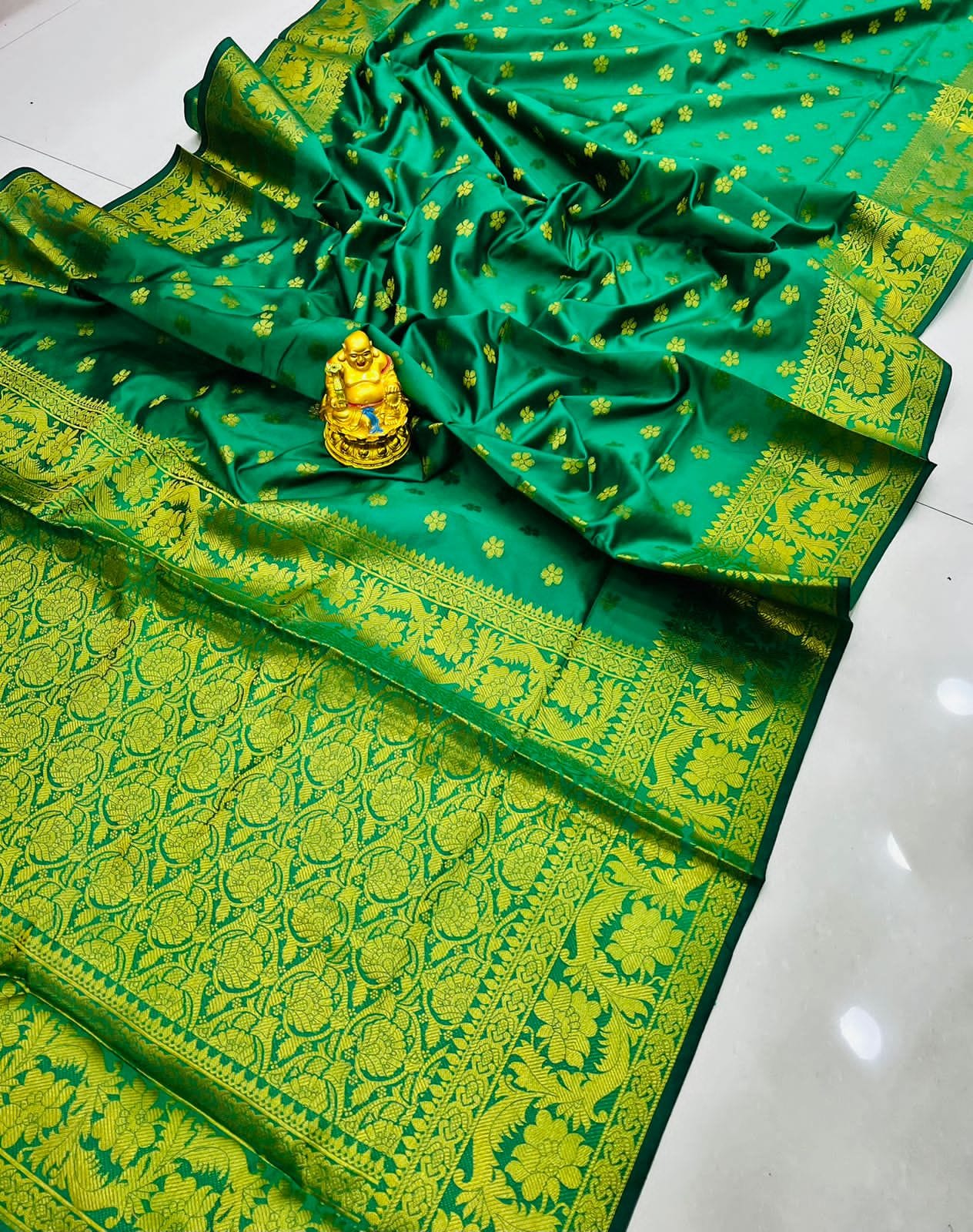 Felicitous Green Soft Banarasi Silk Saree With Enchanting Blouse Piece