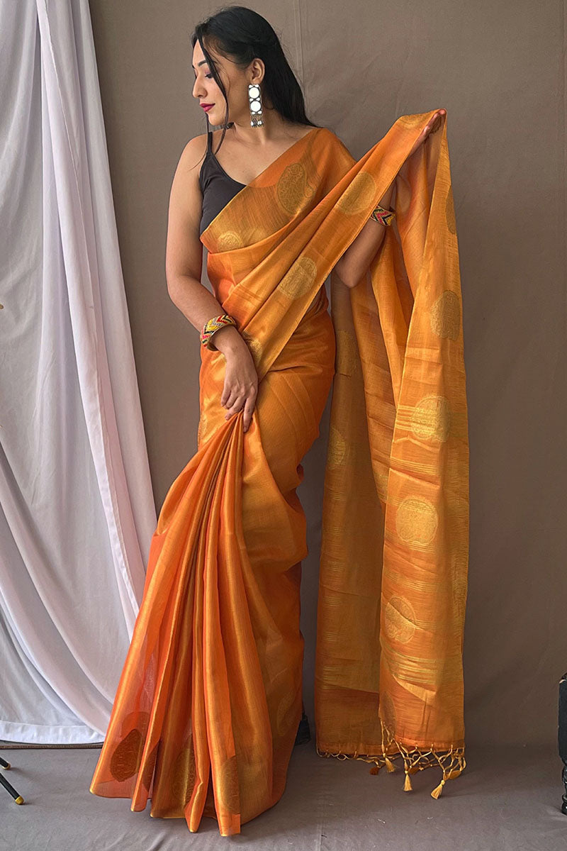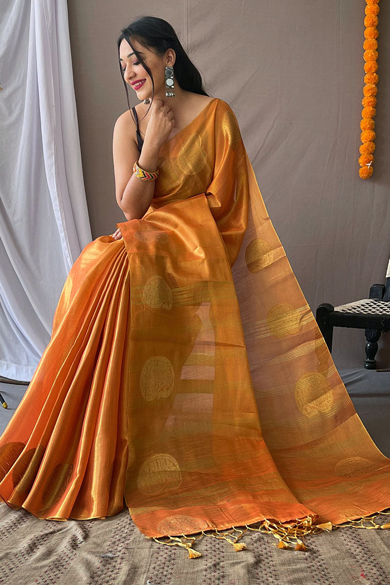 Flameboyant Orange Soft Banarasi Tissue Silk Saree With Flameboyant Blouse Piece