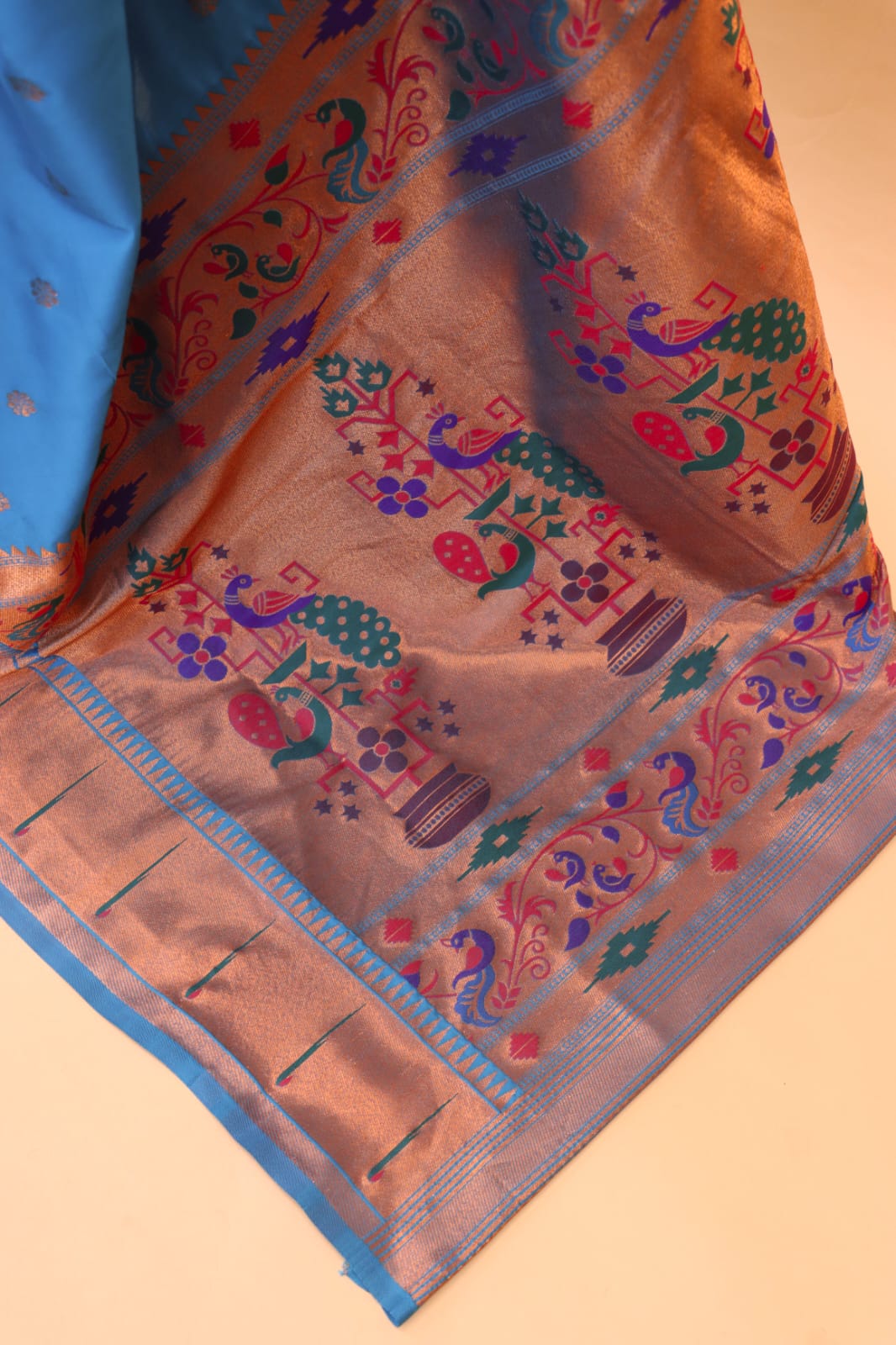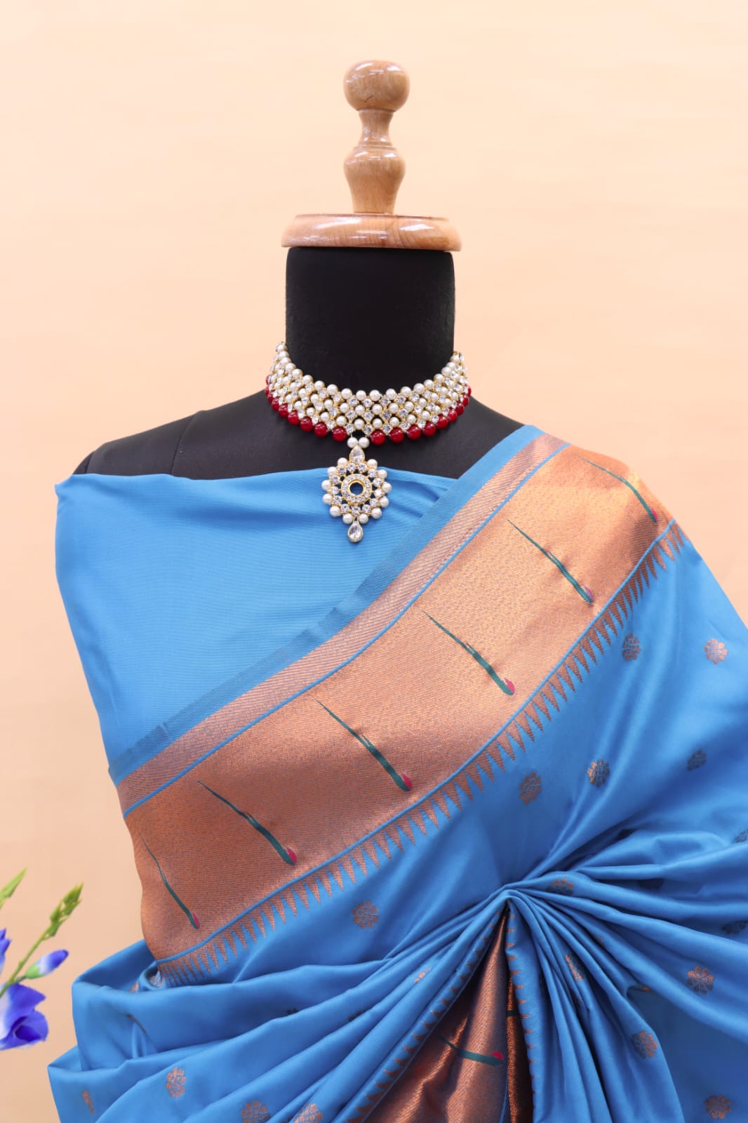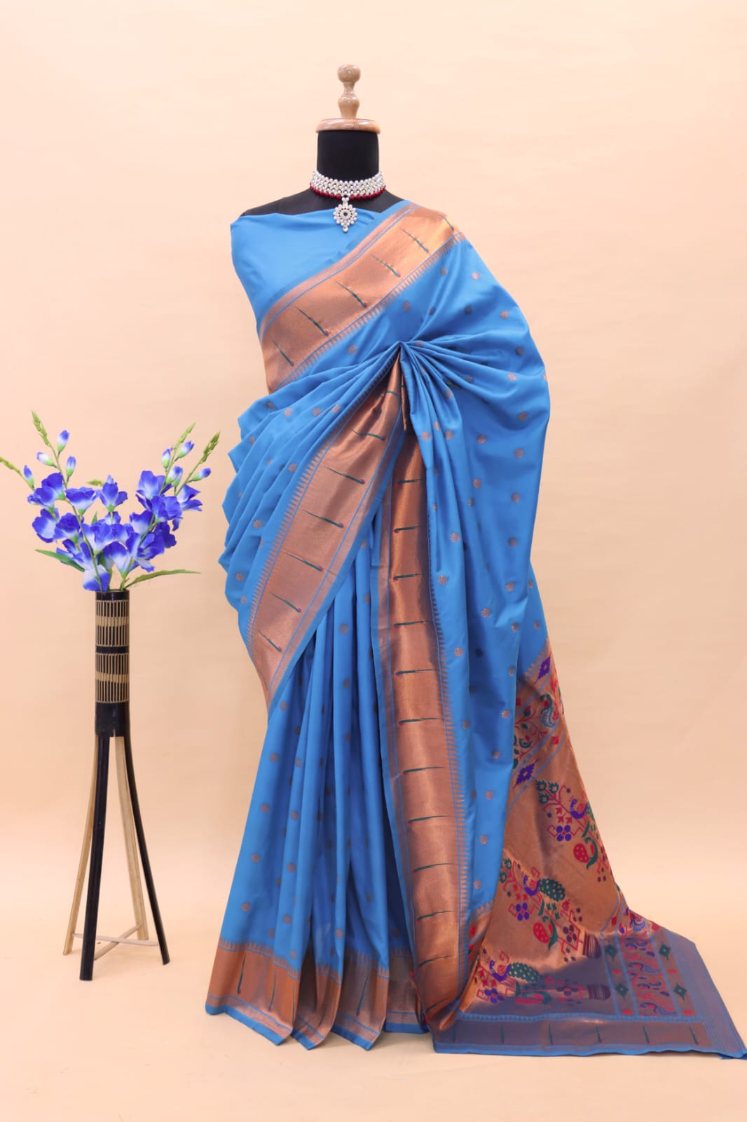 Increase quantity for Girlish Firozi Paithani Silk Saree With Charming Blouse Piece