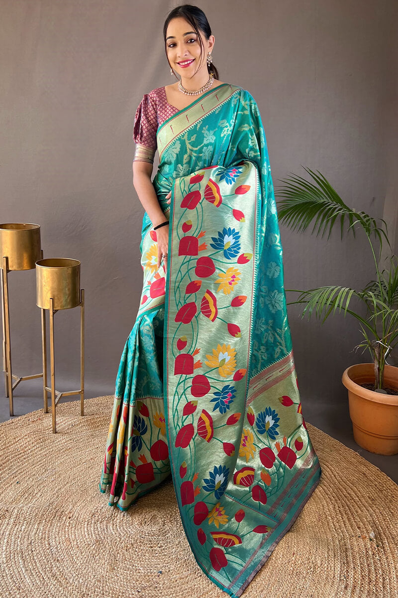 Girlish Rama Paithani Silk Saree With Surpassing Blouse Piece – Festive Saree with Blouse Piece (5.5 Meters)