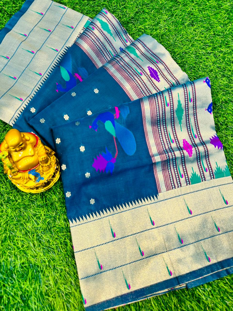 Glittering Blue Paithani Silk Saree With Nemesis Blouse Piece