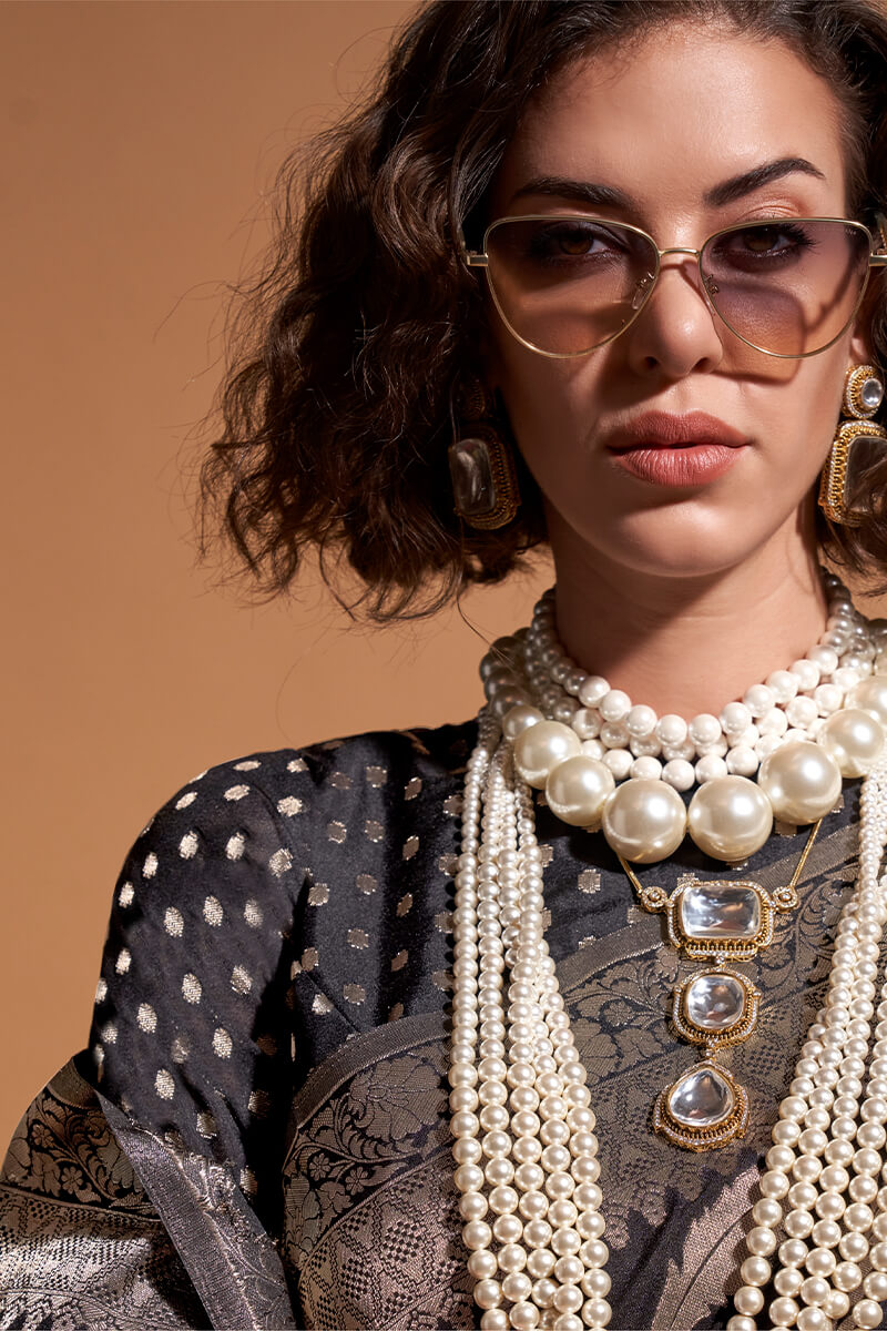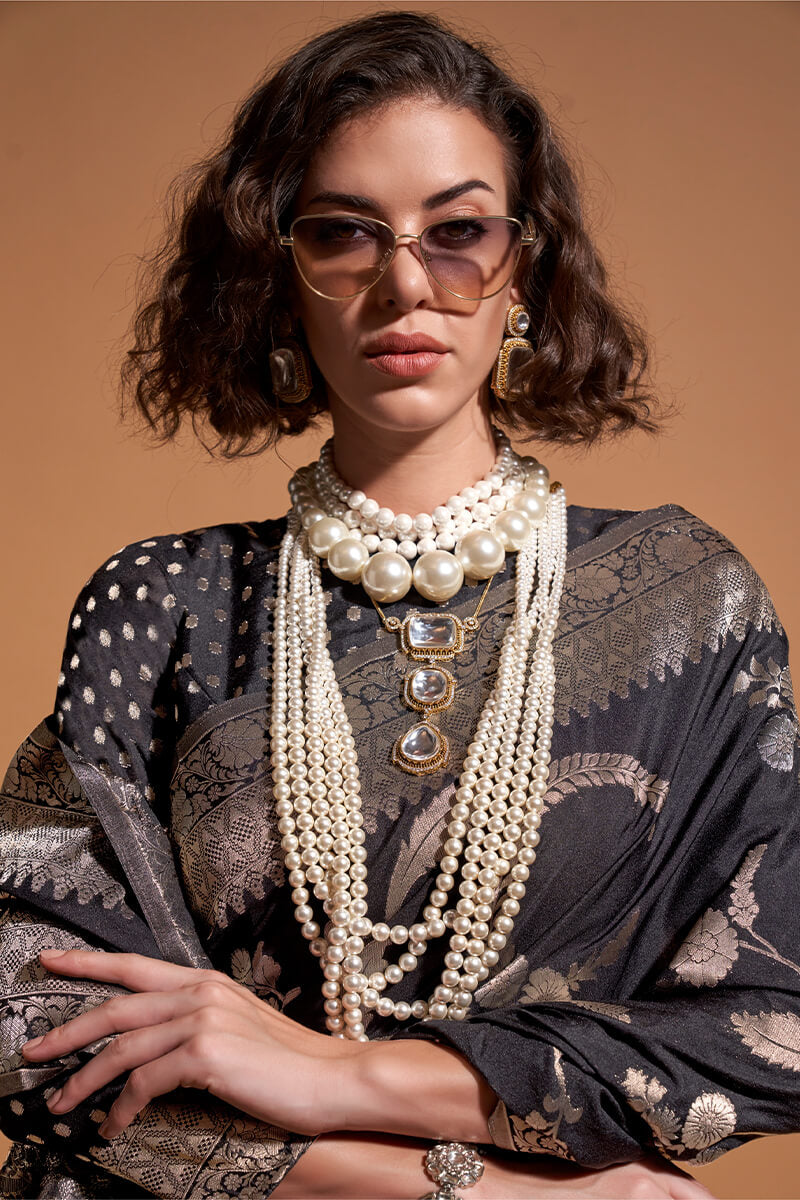 Glorious Black Georgette Banarasi Silk Saree With Beauteous Blouse Piece