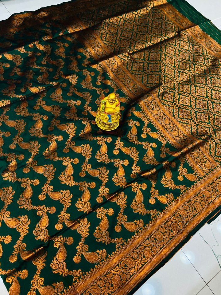 Inspired by centuries of tradition, presenting esoteric banarasi silk, sparkling silver zari buta & border a saree that sets you apart from the other, pair it up as you like and add the glam!!