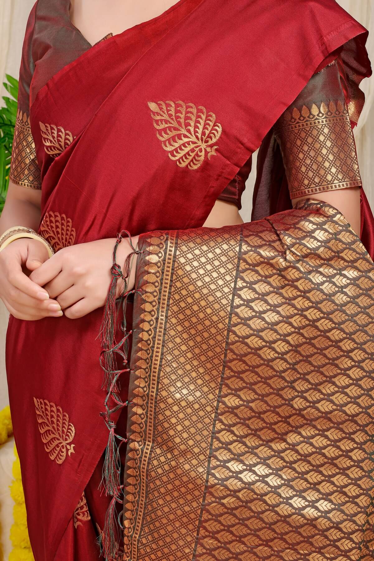 Decrease quantity for Glowing Maroon Soft Banarasi Silk Saree With Lissome Blouse Piece