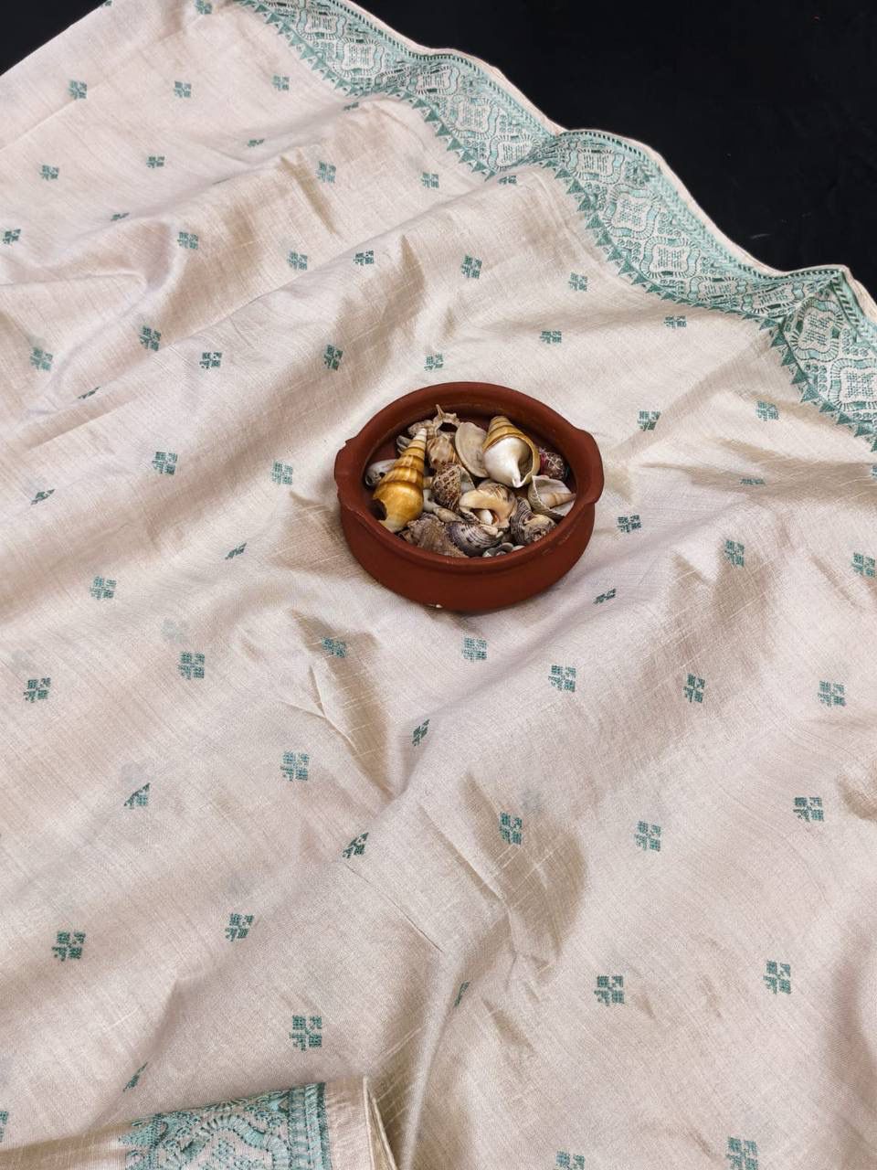 Elevate your ethnic wardrobe with our stunning Embroidery Work Tussar Silk Saree. Crafted from lightweight and breathable Tussar silk, this saree is perfect for all-day wear. The delicate embroidery work adds a touch of glamour, making it a versatile piece for both formal events and casual gatherings. Make a statement wherever you go with this timeless classic.