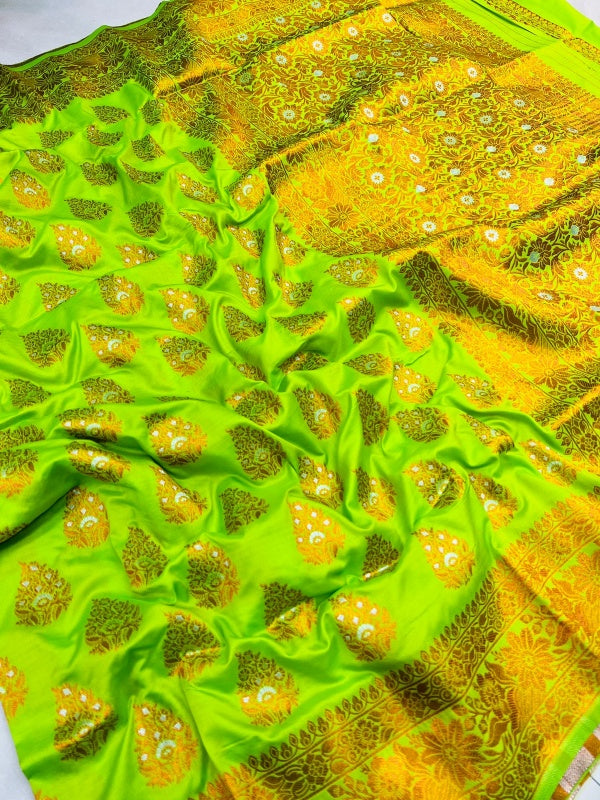 Imaginative Parrot Soft Banarasi Silk Saree With Splendorous Blouse Piece