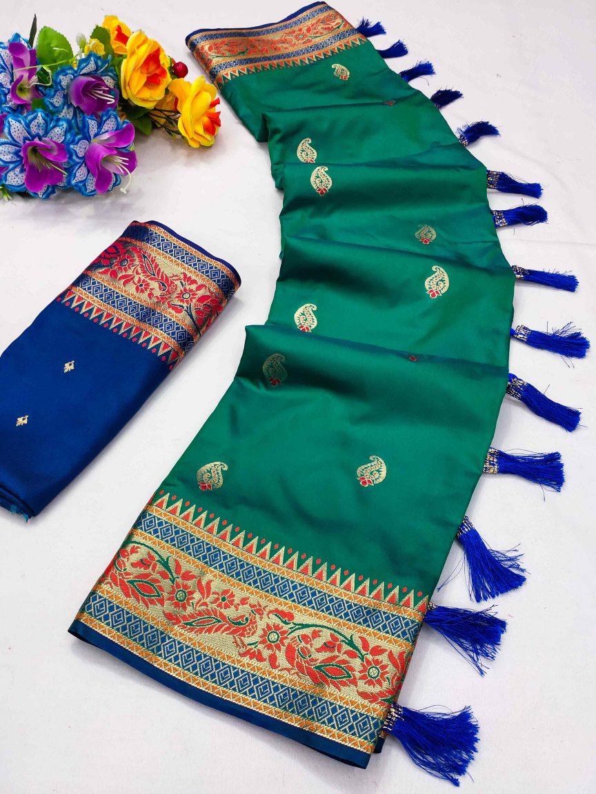 Invaluable Rama Soft Banarasi Silk Saree With Ideal Blouse Piece