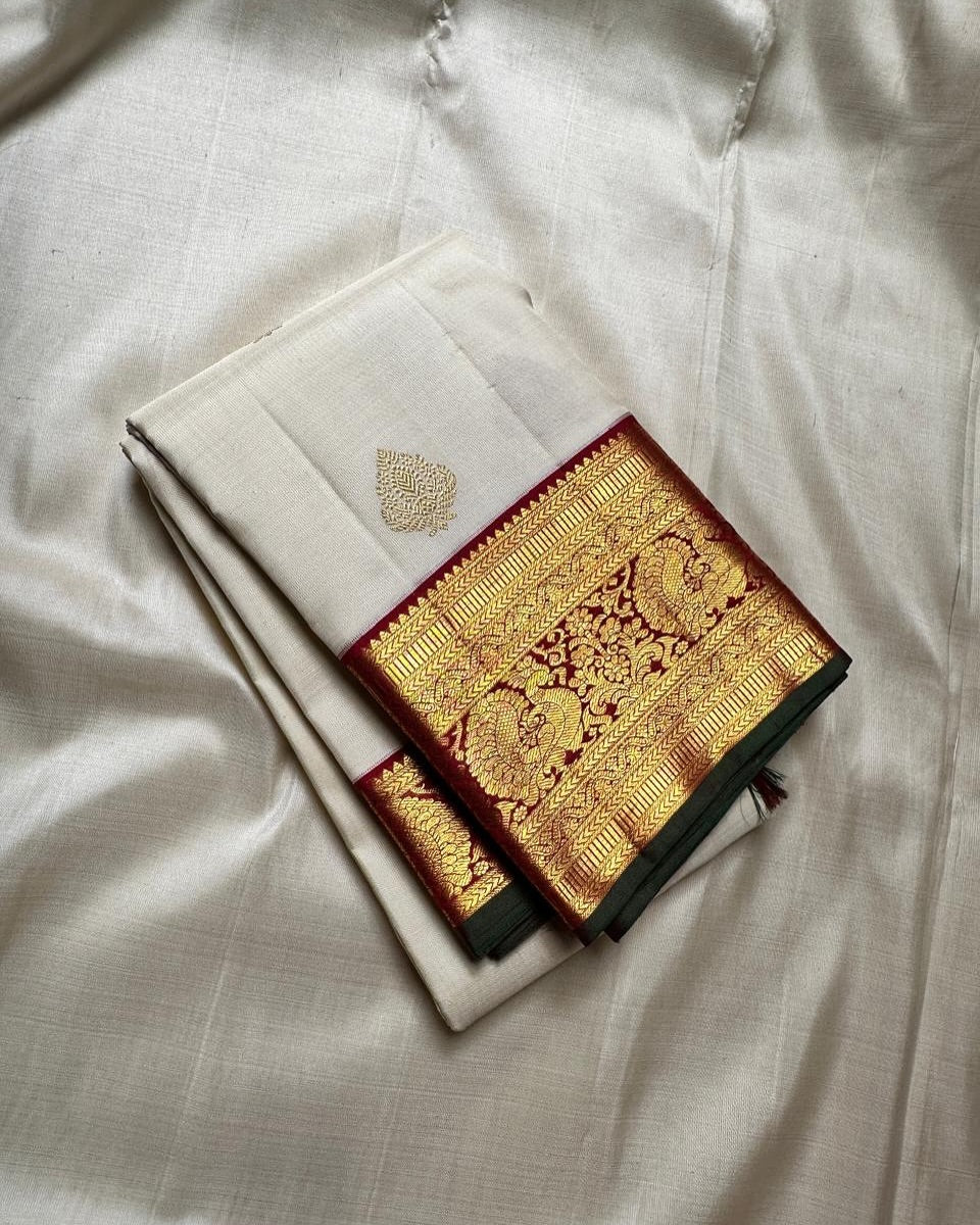 Elevate your traditional wardrobe with our elegant Jazzy Beige Soft Silk Saree! Crafted with fine silk material, this saree drapes beautifully and exudes a luxurious feel. The stylish blouse piece adds a modern touch to this classic ensemble, making it perfect for any special occasion.