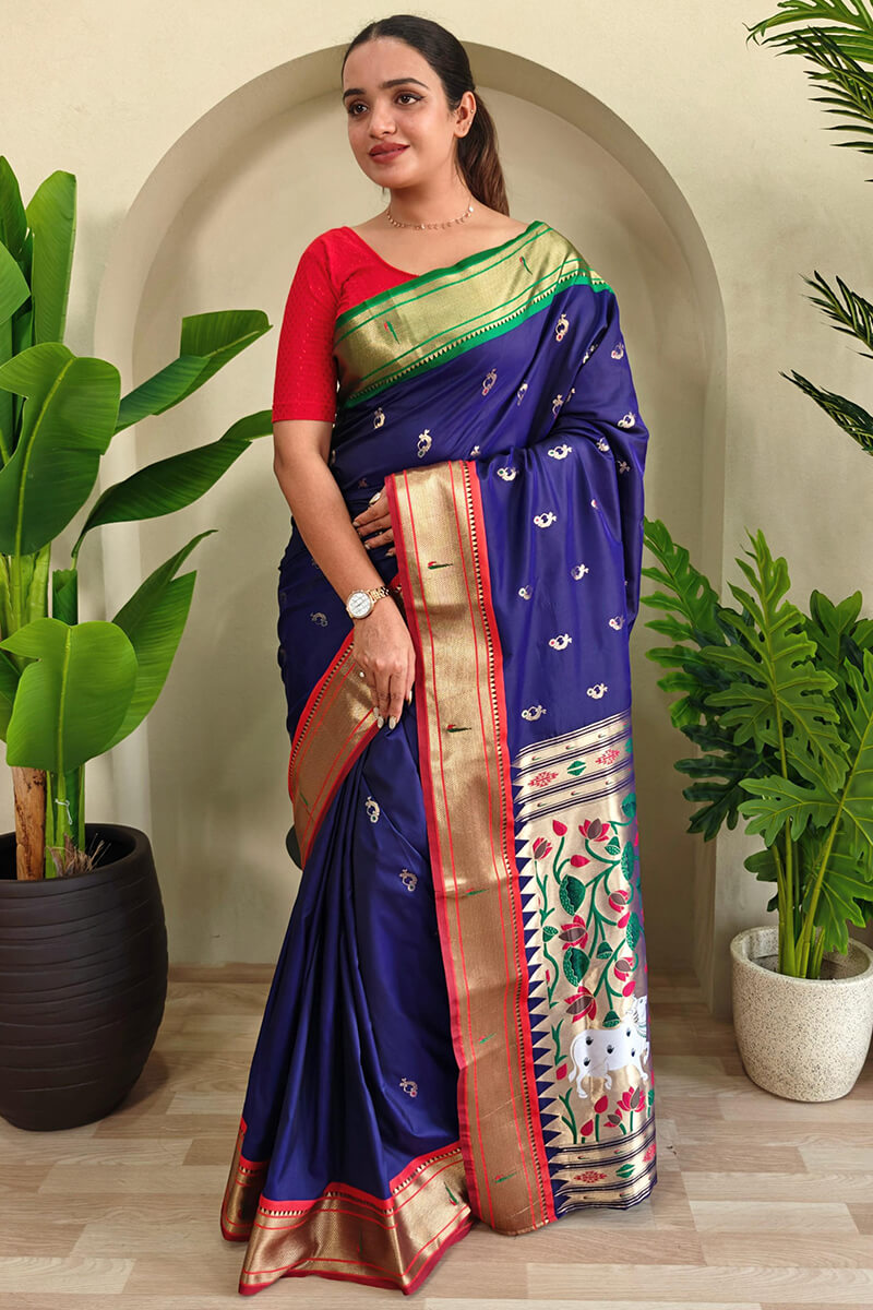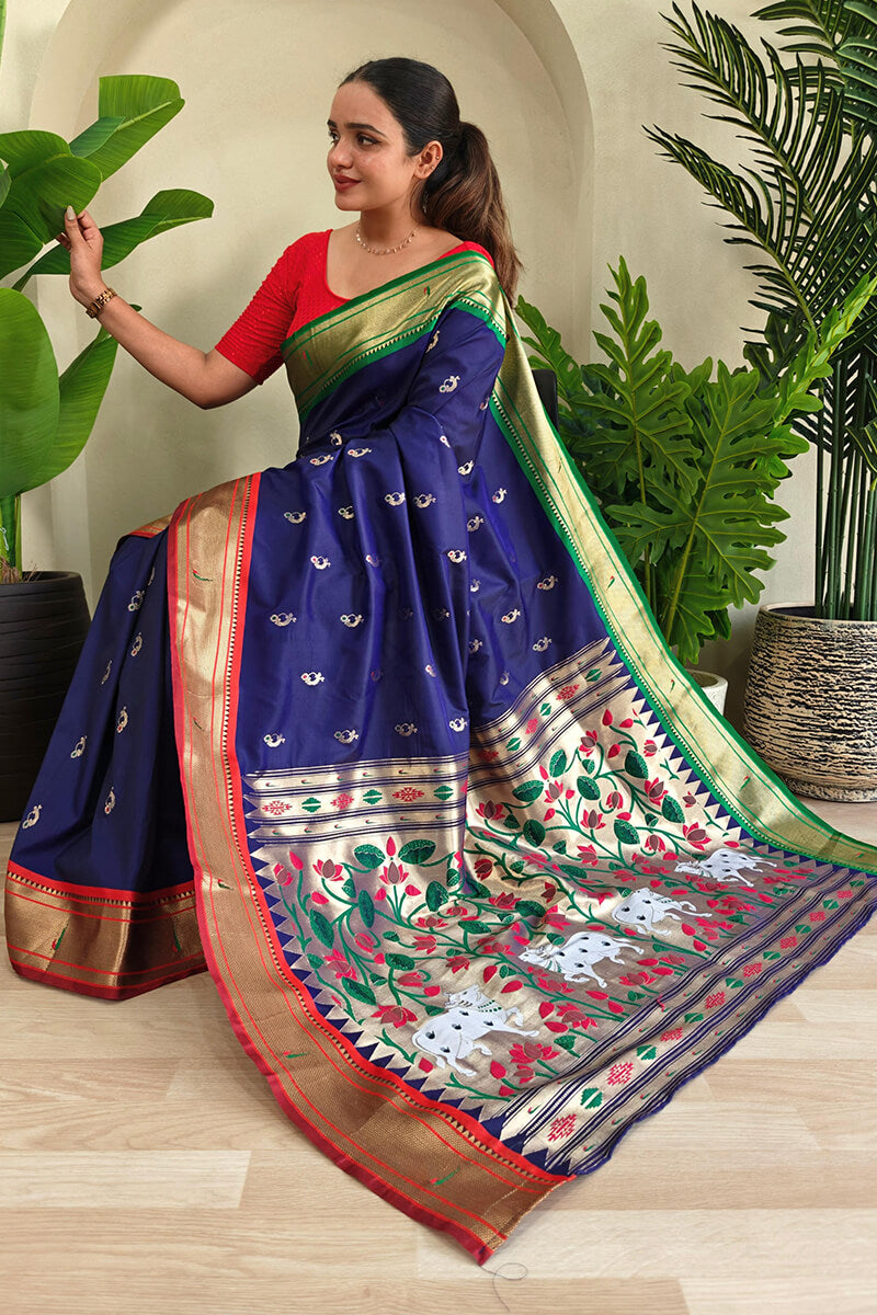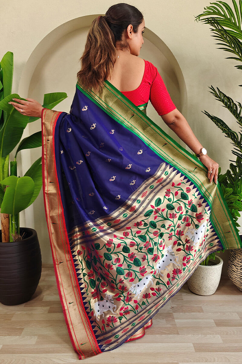 Immerse yourself in the luxurious allure of our Paithani Silk Saree, a symbol of traditional opulence and grandeur. Crafted with the finest silk fabric and embellished with intricate zari work, this saree is a true masterpiece that epitomizes sheer luxury and sophistication.