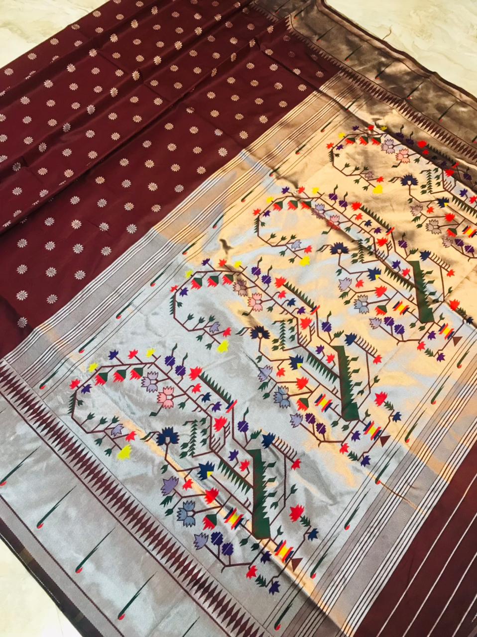 SAREE SPECIFICATIONS: Fabric: Paithani Silk Colour: Brown Work Type: Meenakari