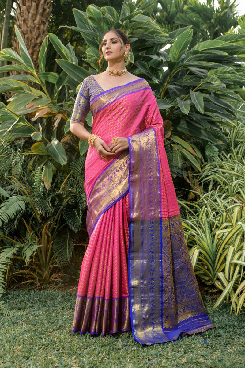 Lovely Dark Pink Soft Banarasi Silk Saree With Bewitching Blouse Piece