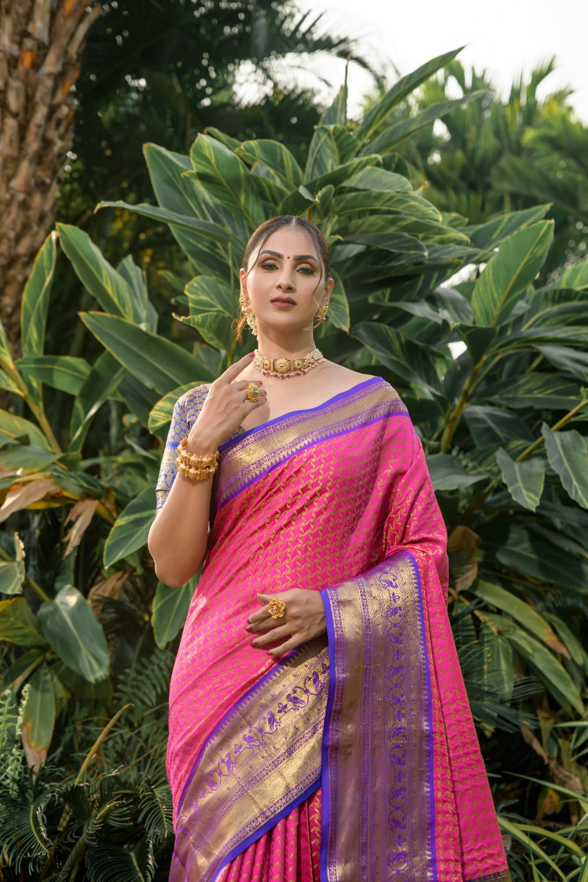Decrease quantity for Lovely Dark Pink Soft Banarasi Silk Saree With Bewitching Blouse Piece