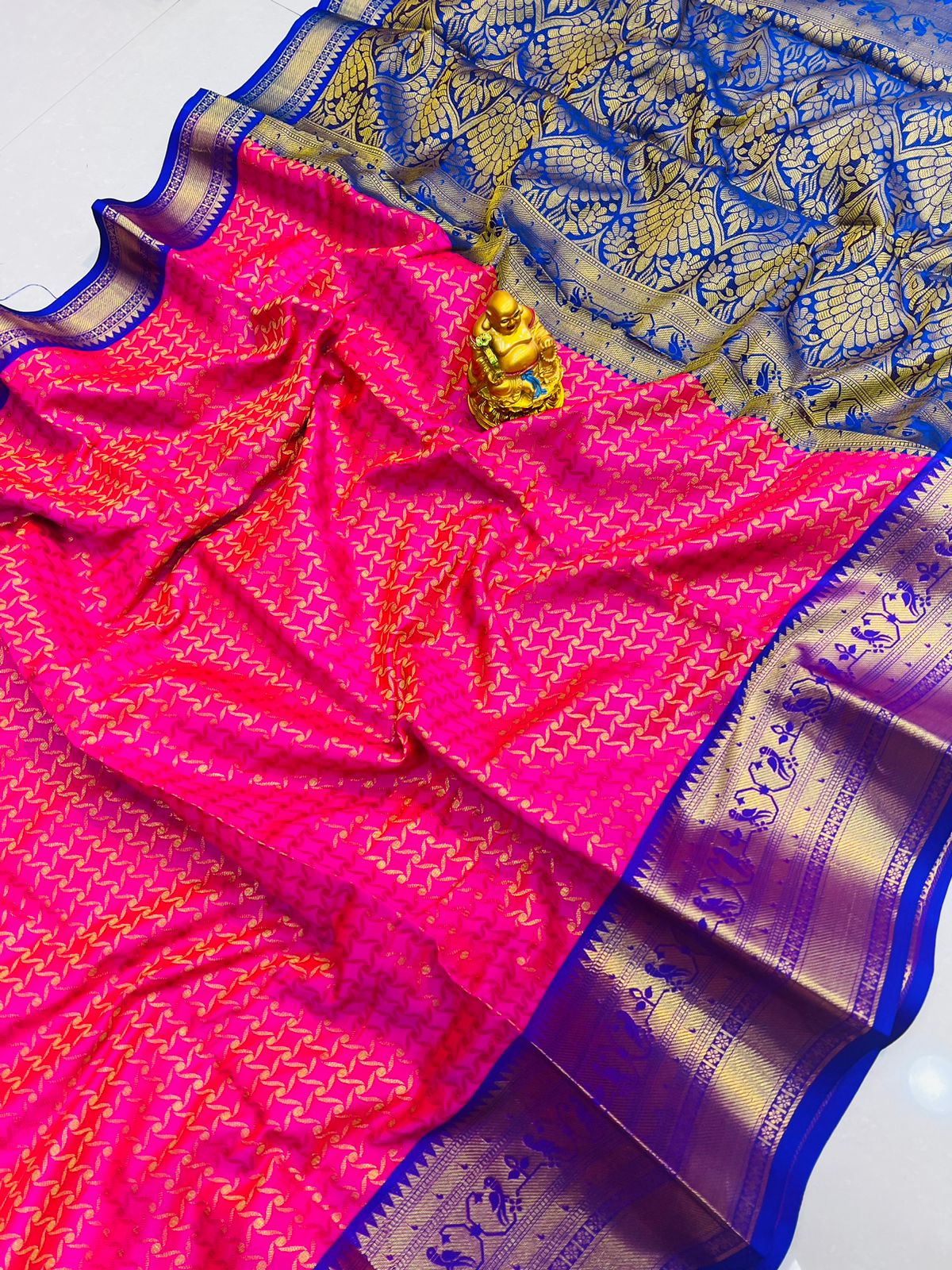 Increase quantity for Lovely Dark Pink Soft Banarasi Silk Saree With Bewitching Blouse Piece