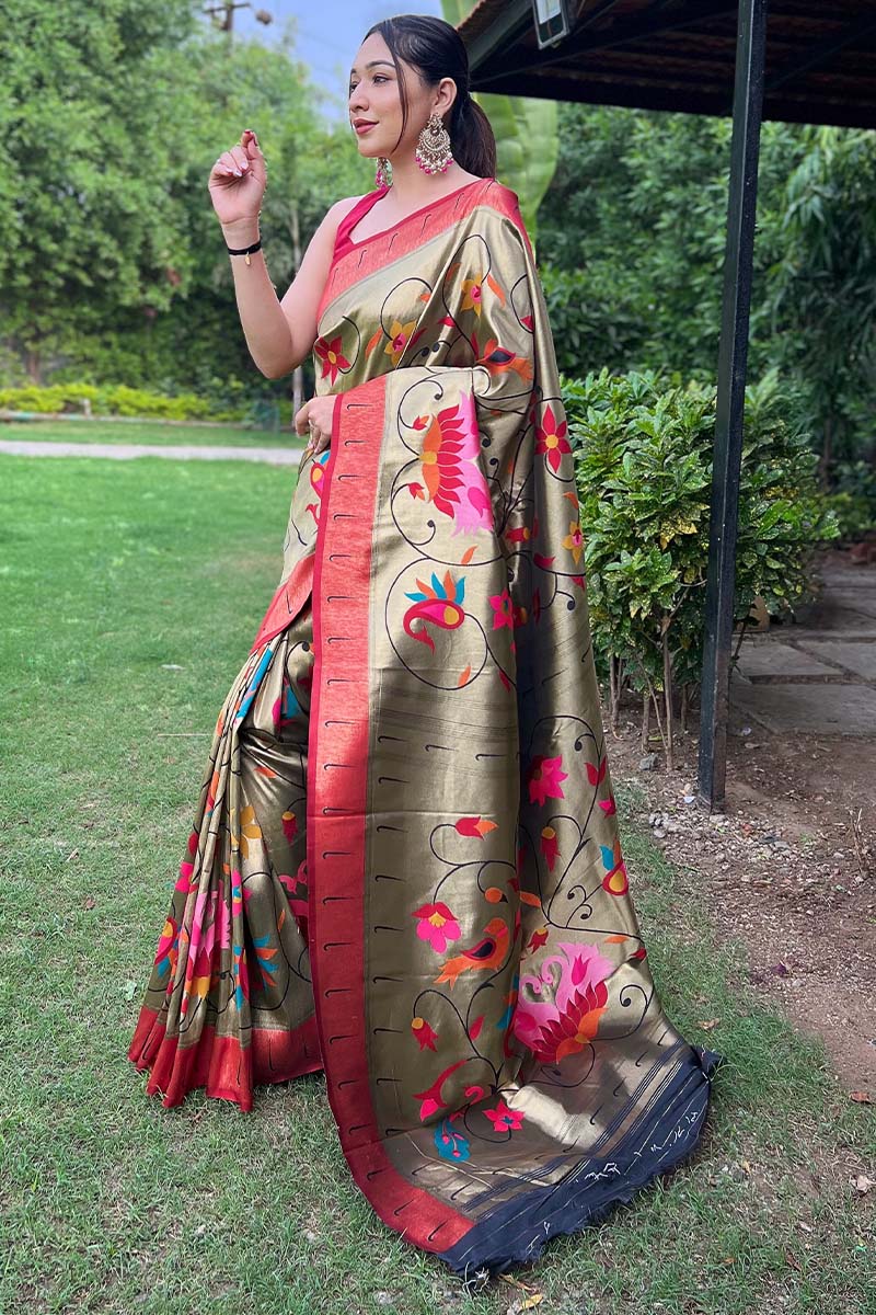 Elevate your ethnic wardrobe with our exquisite Paithani silk saree! Crafted with precision and care, this saree features intricate weaving and vibrant colors that will surely make you stand out at any formal event. Pair it with statement jewelry and you're all set to dazzle!