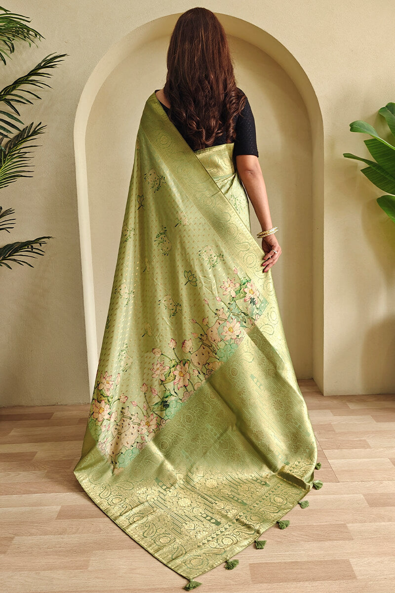 Elevate your traditional look with this exquisite Soft Banarasi Silk Saree. Crafted with care, this saree exudes timeless elegance and sophistication. The lightweight fabric makes it comfortable to wear all day long, while the intricate design showcases the rich heritage of Banaras.