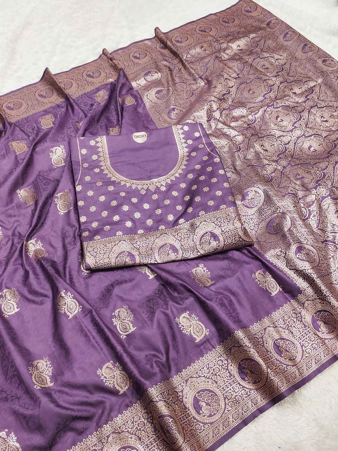 Magnetic Lavender Soft Banarasi Silk Saree With Exquisite Blouse Piece