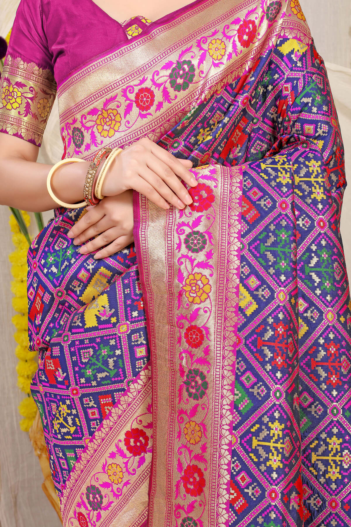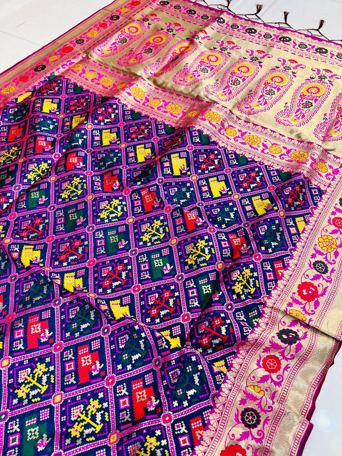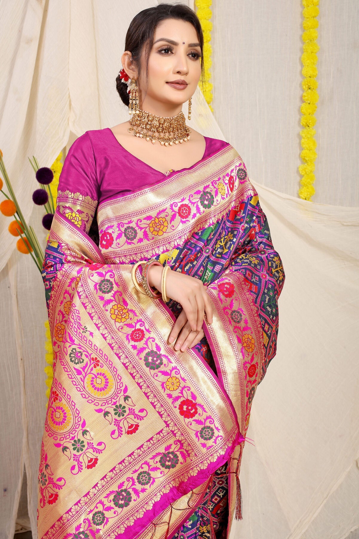 Magnetic Navy Blue Paithani Silk Saree With Opulent Blouse Piece
