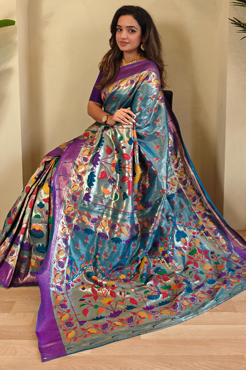 Experience the allure of the Paithani Silk Saree, a sartorial marvel that captures the essence of Indian heritage and beauty. Meticulously handcrafted with sumptuous silk threads and intricate detailing, this saree radiates grace and elegance.