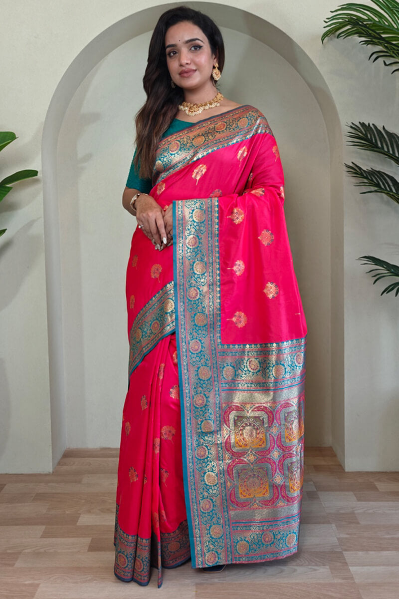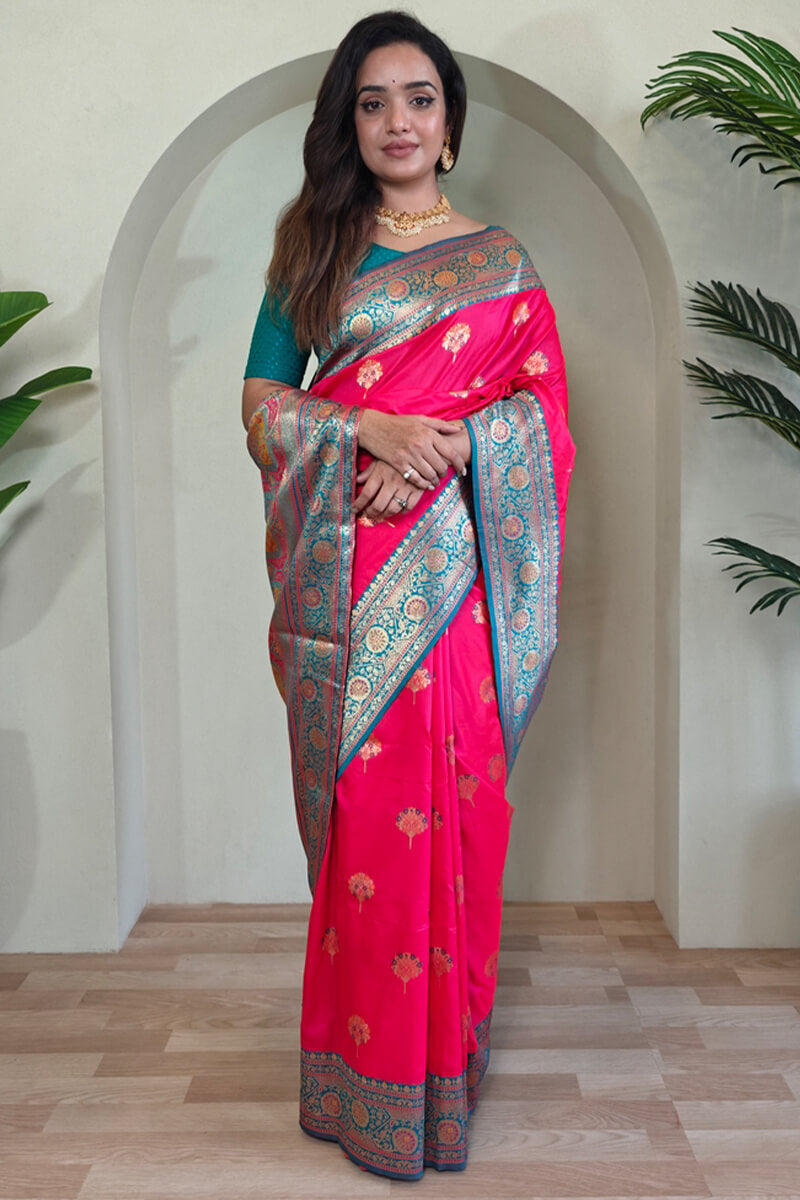 Elevate your ethnic wardrobe with our Soft Banarasi Silk Saree! Crafted with luxurious silk fabric, this elegant saree drapes beautifully and exudes timeless grace. Perfect for weddings, parties, or any special occasion, this saree is sure to make you stand out in a crowd.