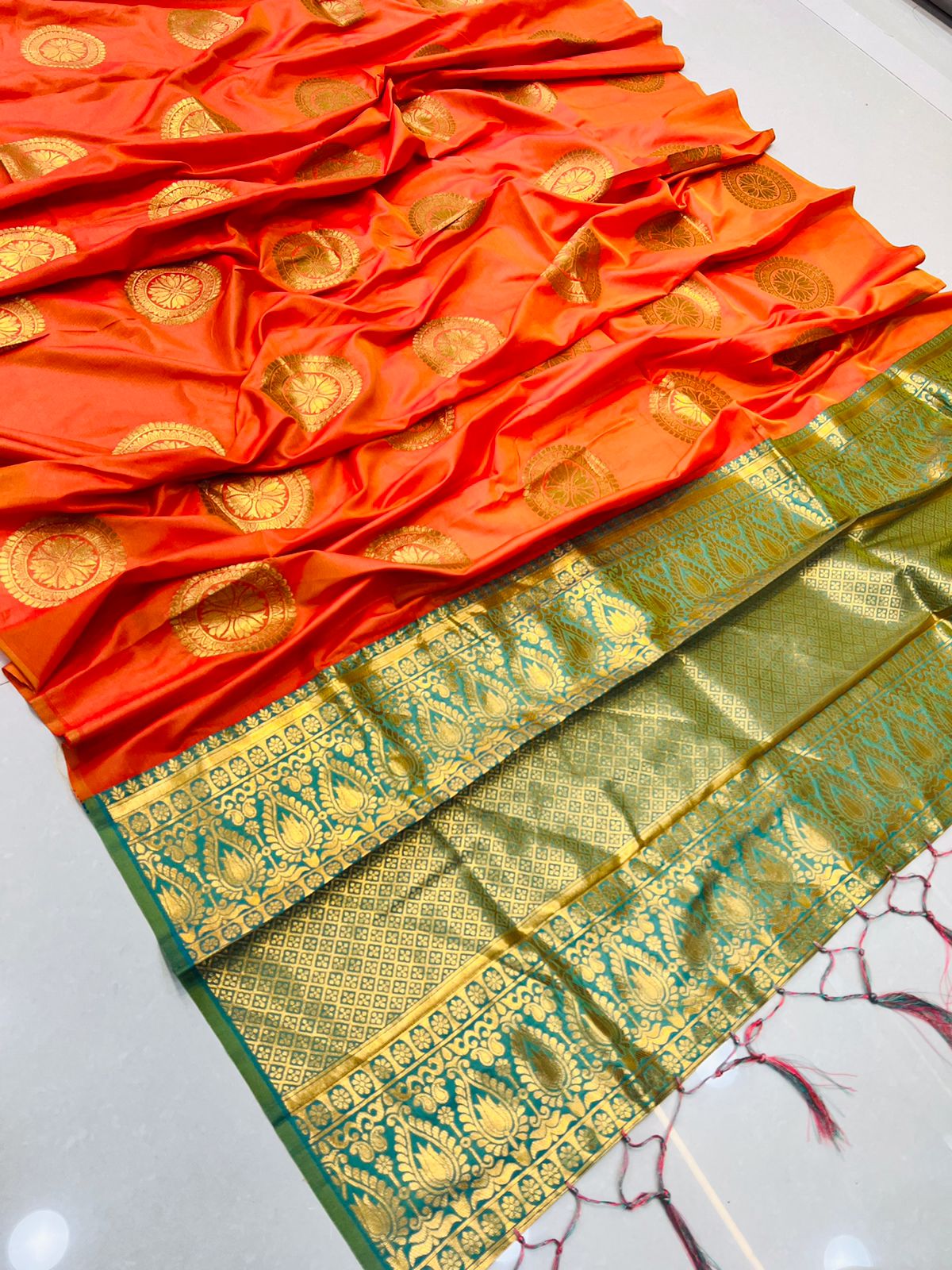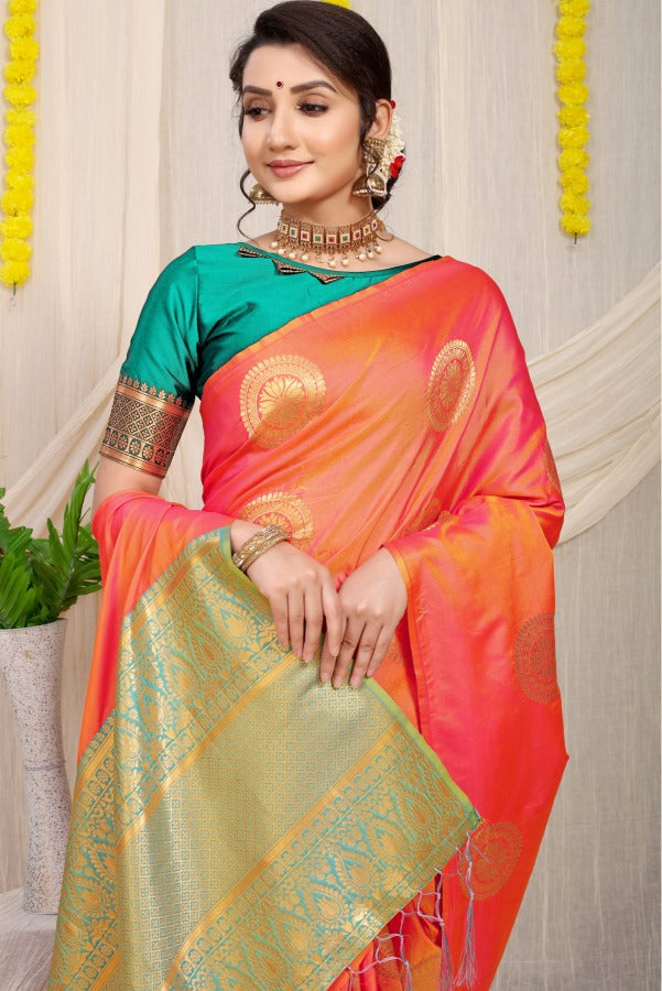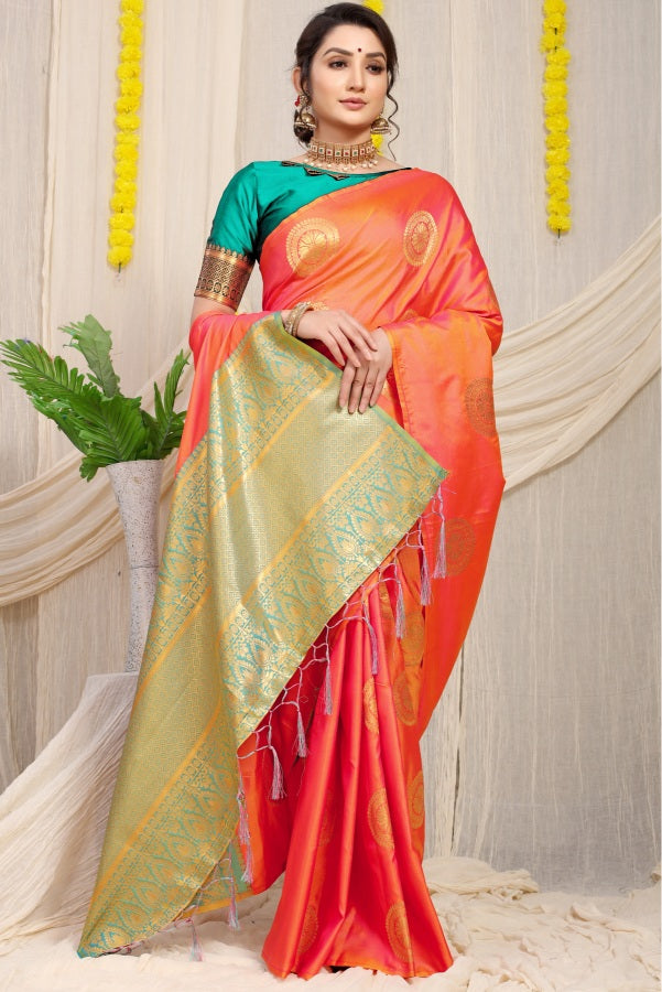 Mesmerising Orange Kanjivaram Silk Saree and Angelic Blouse Piece