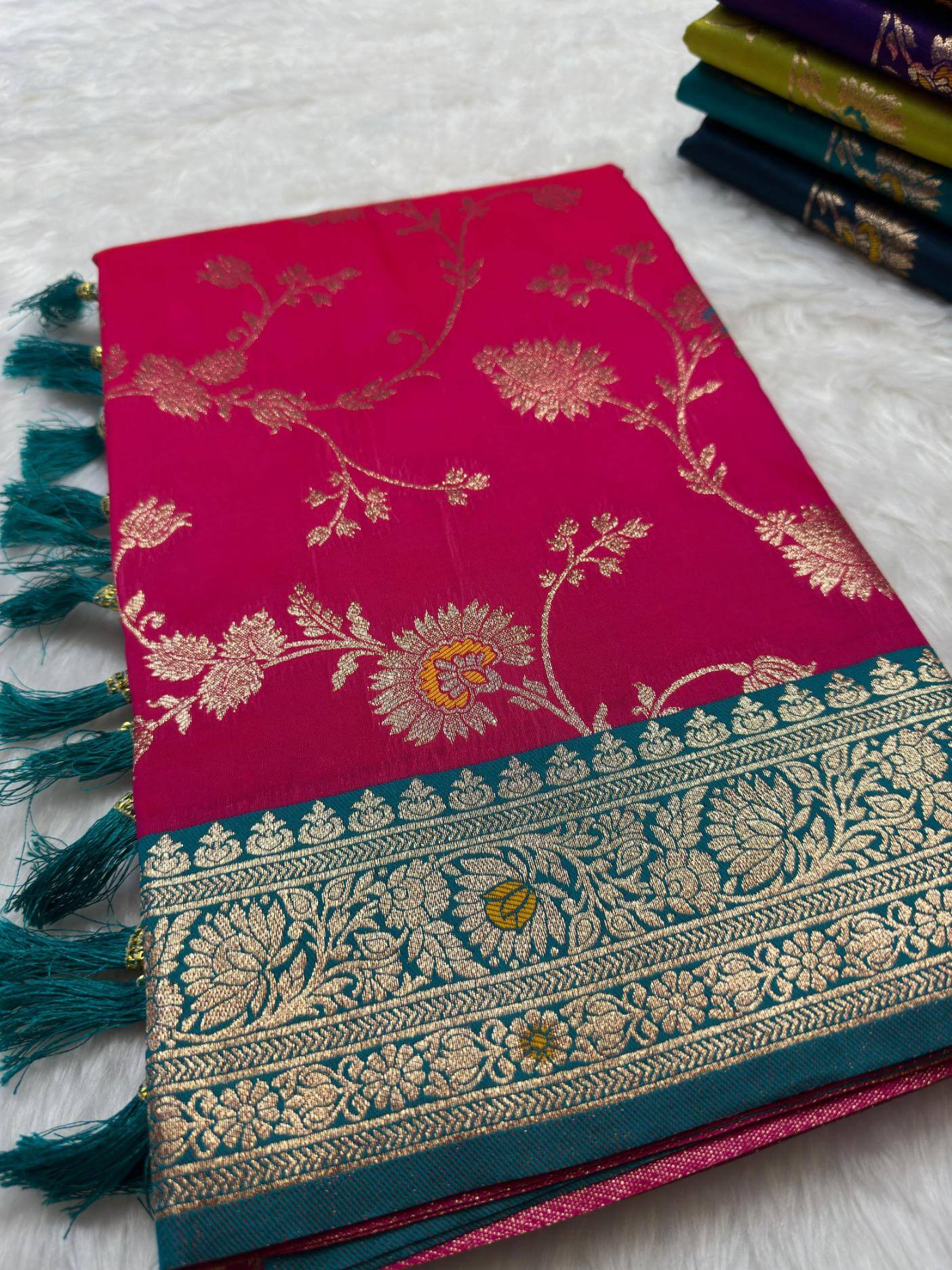 Elevate your ethnic style with our Soft Banarasi Silk Saree. Made from pure silk, this saree drapes beautifully and is perfect for both formal events and festive occasions. The traditional Banarasi weaving adds a touch of grandeur to your ensemble.