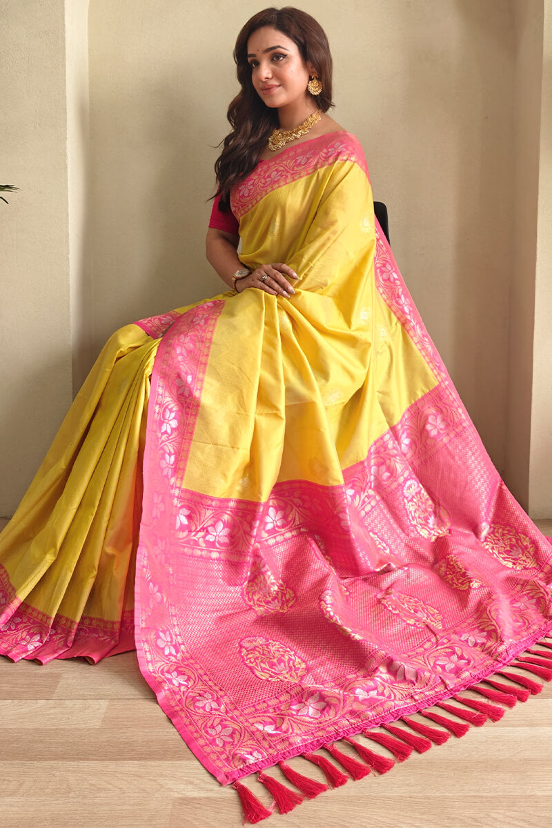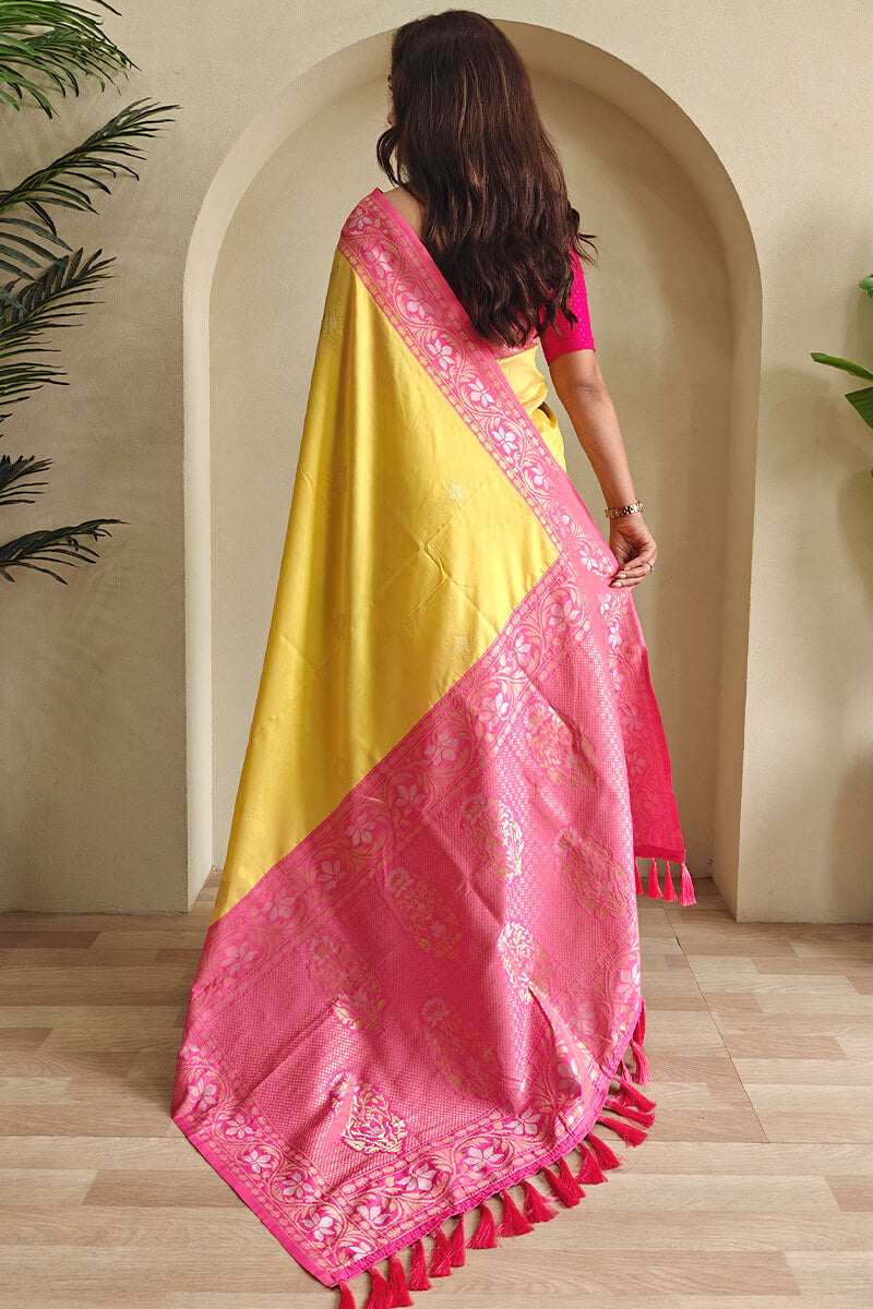 Dive into a world of timeless elegance with our Soft Banarasi Silk Saree. Crafted with intricate detailing and luxurious fabric, this saree embodies refinement and sophistication. Elevate your style with this exquisite piece that exudes grace and opulence.