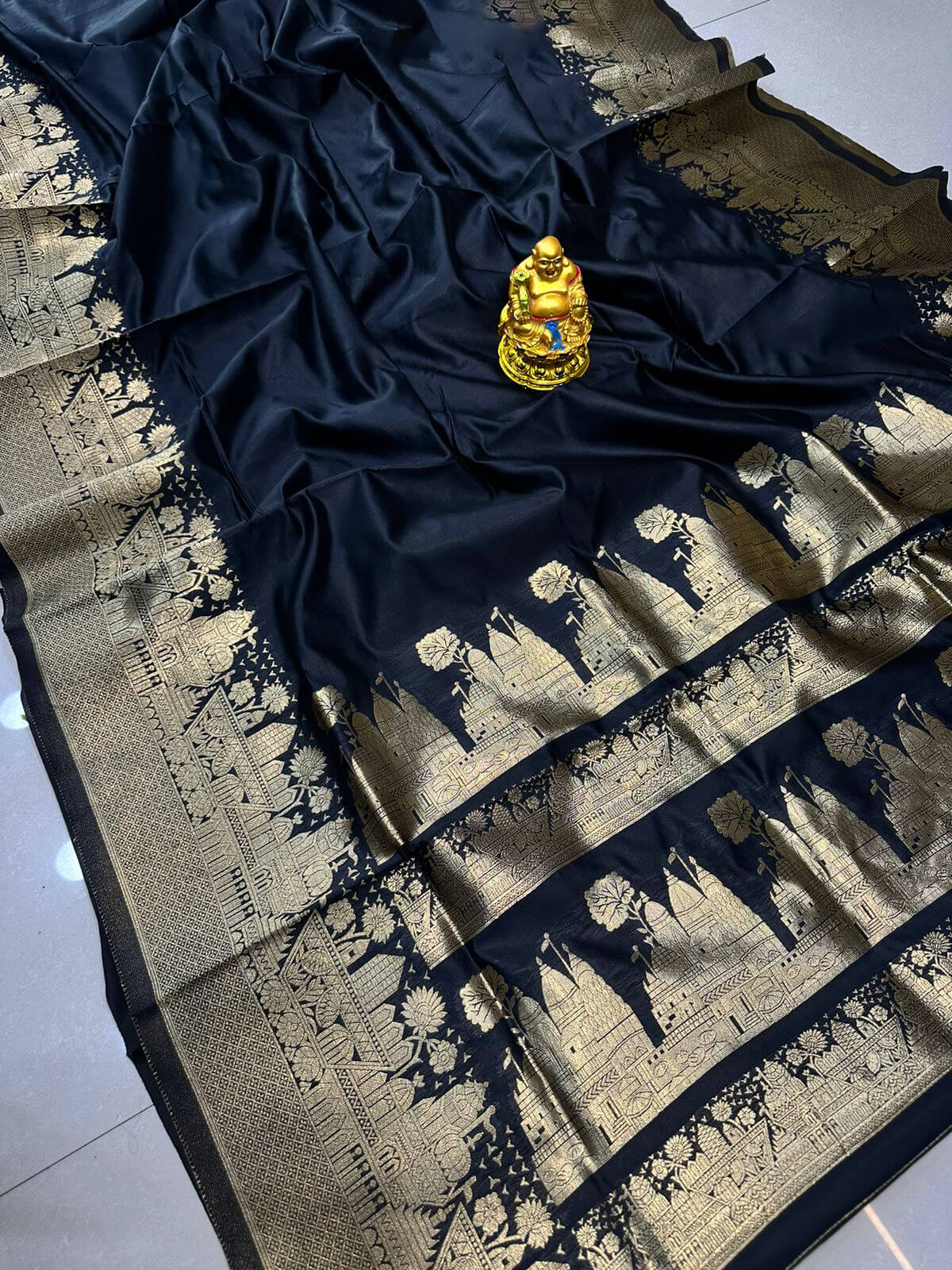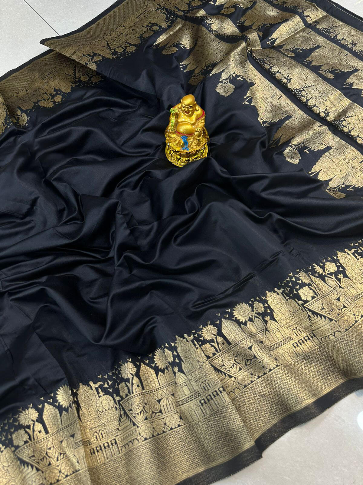 Opulent Black Soft Banarasi Silk Saree With Cynosure Blouse Piece