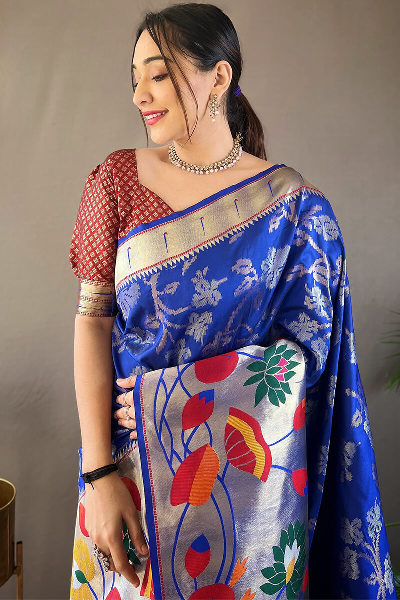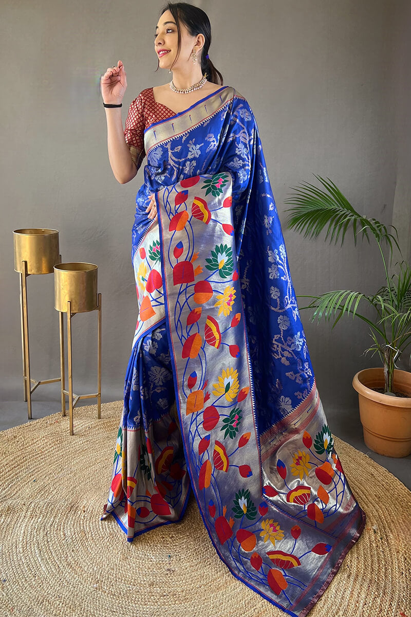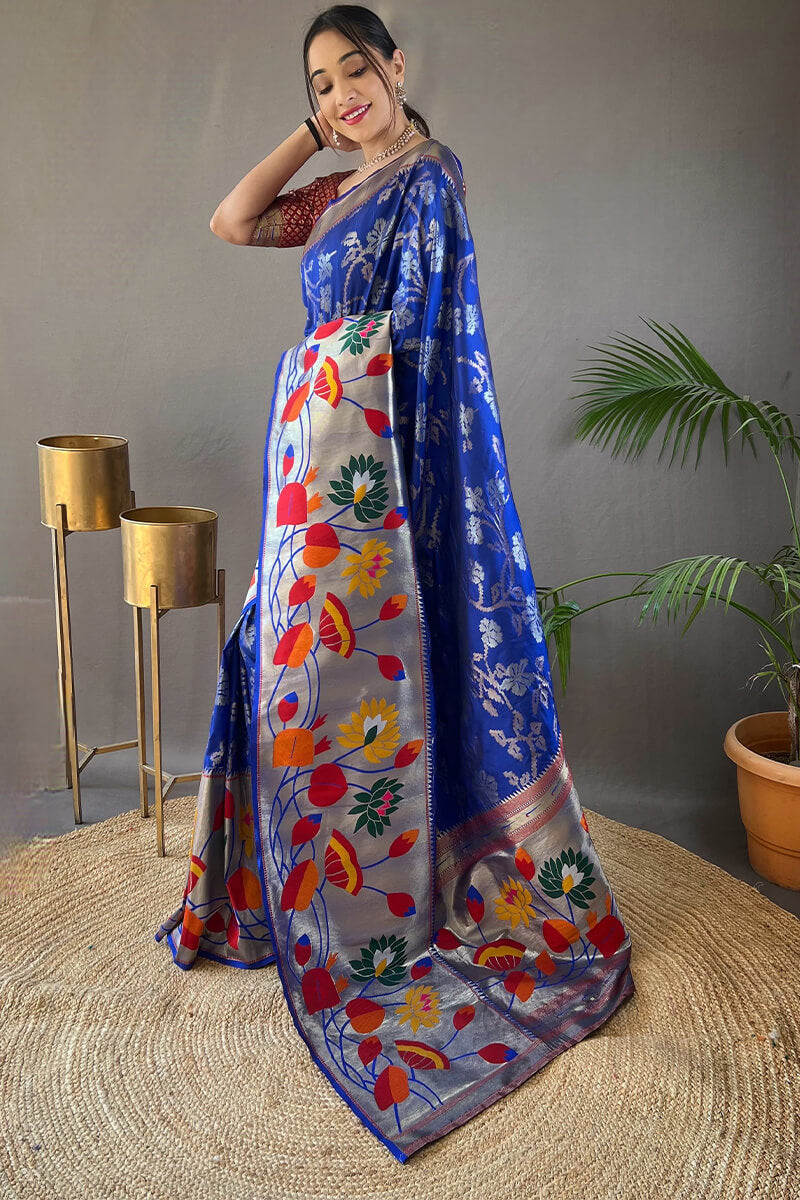 Opulent Royal Blue Paithani Silk Saree With Preferable Blouse Piece
