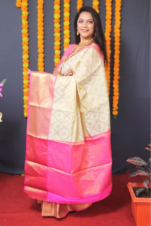 Outstanding Beige Kanjivaram Silk With Extraordinary Blouse Piece