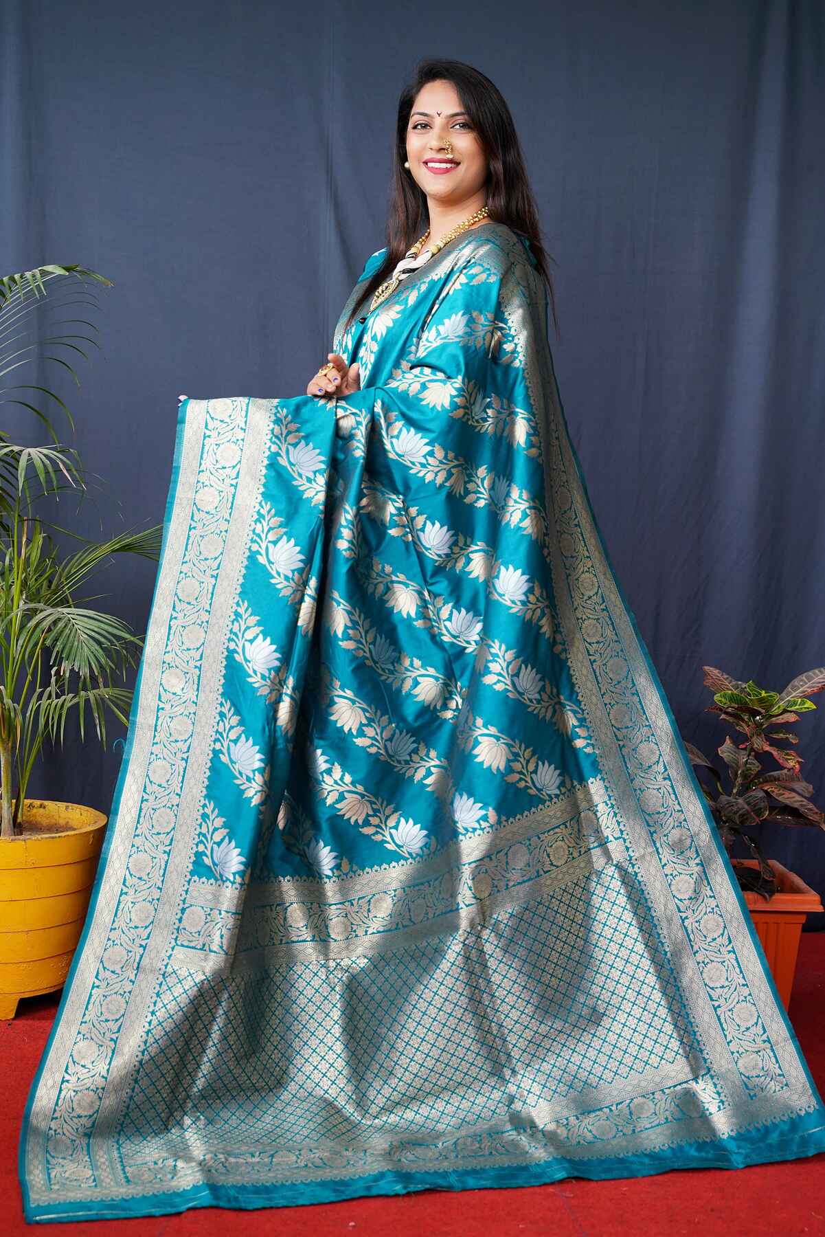 Petrichor Firozi Kanjivaram Silk With Fairytale Blouse Piece