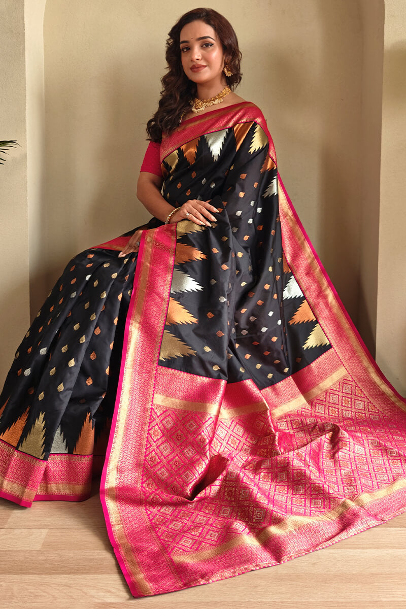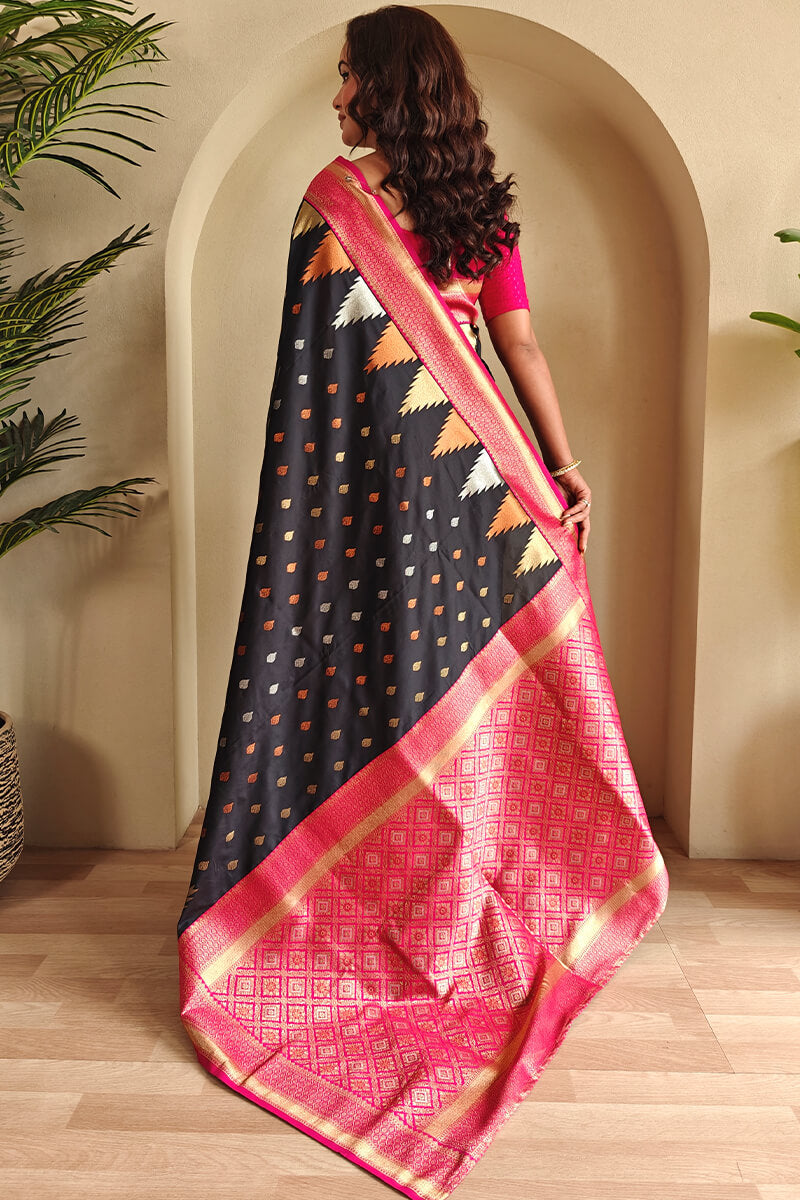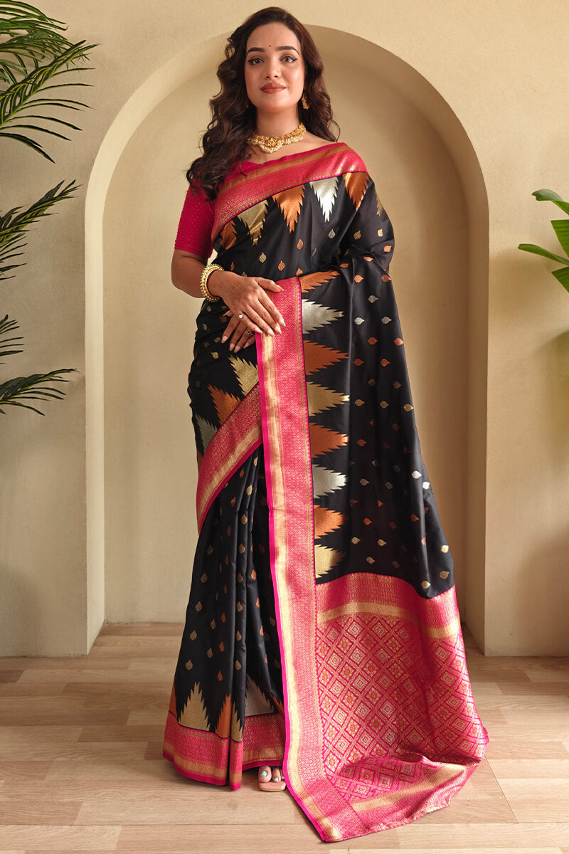 Precious Black Soft Banarasi Silk Saree With Elegant Blouse Piece