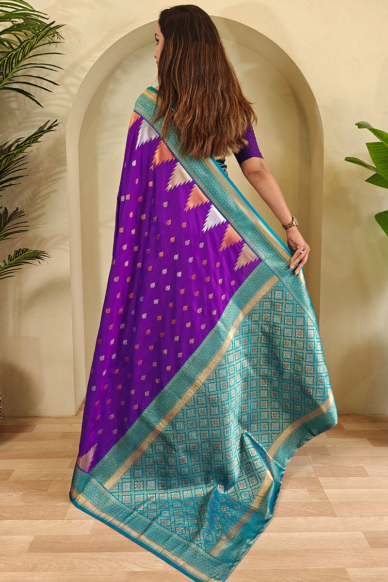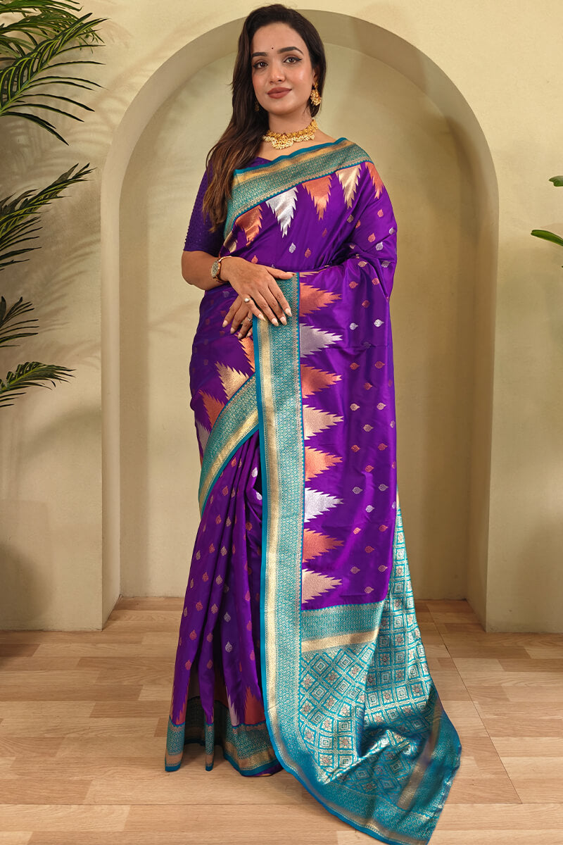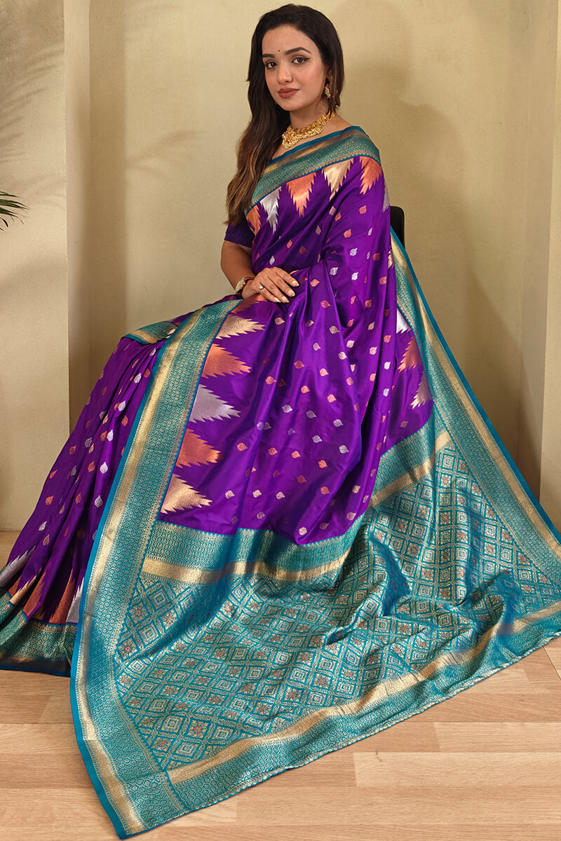 Precious Purple Soft Banarasi Silk Saree With Elegant Blouse Piece