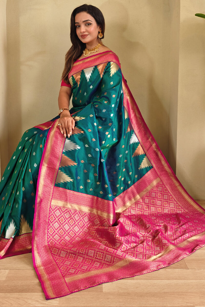 Elevate your traditional wardrobe with our exquisite Soft Banarasi Silk Saree, crafted from the finest quality silk for a luxurious look and feel. This timeless piece features intricate designs and delicate embellishments that exude elegance and grace, making it the perfect statement piece for any special occasion.