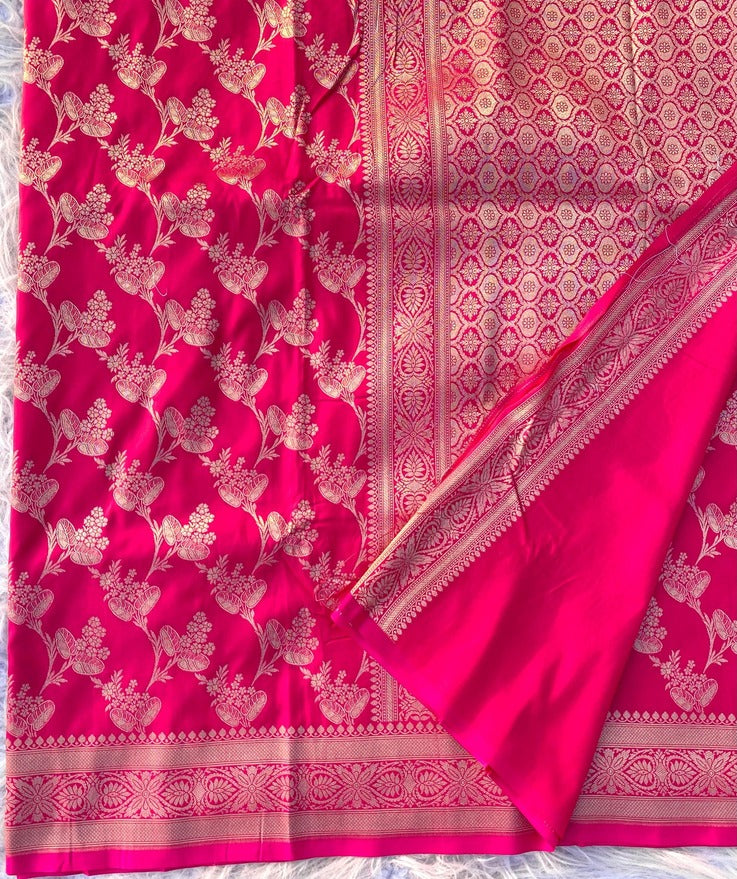 Pretty Dark Pink Soft Banarasi Silk Saree With Skinny Blouse Piece