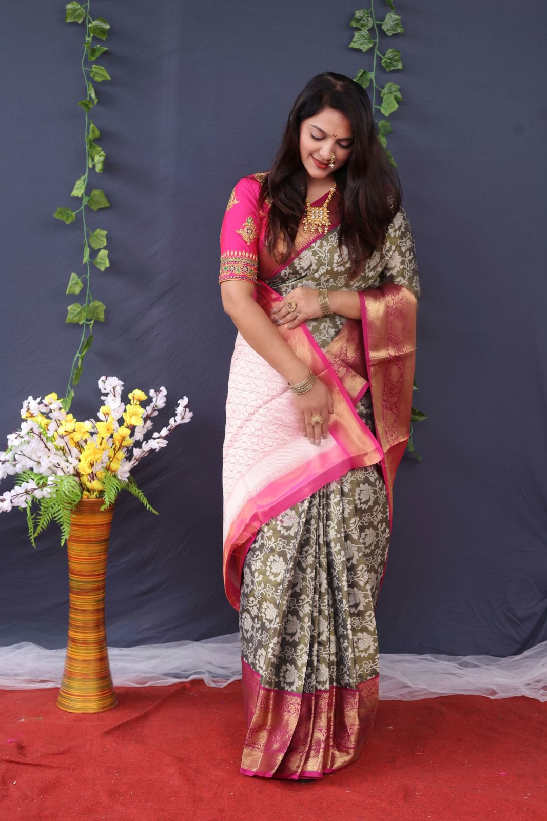 Prodigal Dark Green Kanjivaram Silk With Improbable Blouse Piece